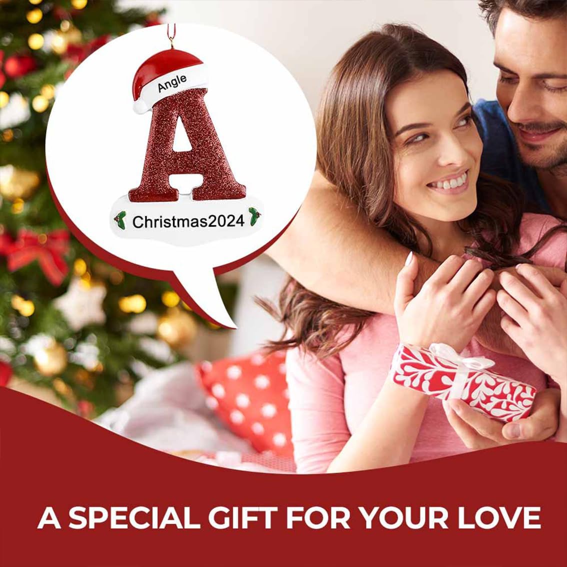 Personalized Christmas Ornaments - Custom Picture & Text Ornaments for Christmas 2024, Baby's 1st Christmas Ornament with Picture for Xmas Tree Custom Gifts for Family, Mom, Dad, Friend (A-Z)