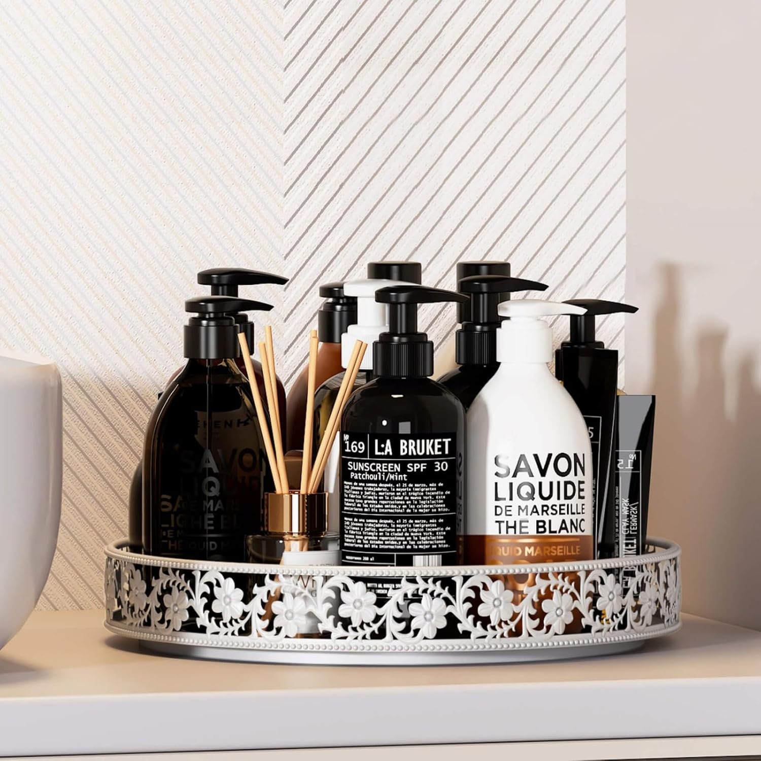 - Floral Raised Edges: The raised edge lazy susan features a beautiful classic floral design, provides superior decorative vision, and prevents items from falling while spinning, making it safer to move the lazy susan organizer from one place to another. The open design keeps items visible and easily accessible.