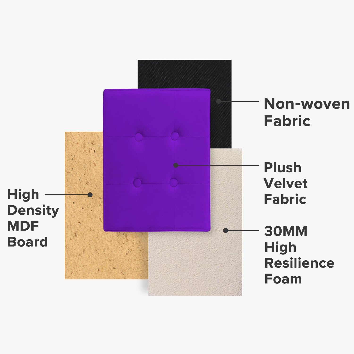 LINMAGCO Storage Ottoman Folding Foot Stool Foot Rest with Side Pocket Modern Ottoman with Storage Short Sofa Stool Velvet 17x13x13(Purple)