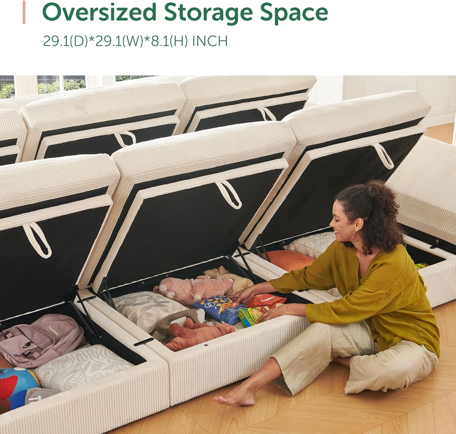 HONBAY Modular Sectional Sofa with Storage Corduroy Sectional Sleeper Sofa Modular Sectional Couches for Living Room,Beige