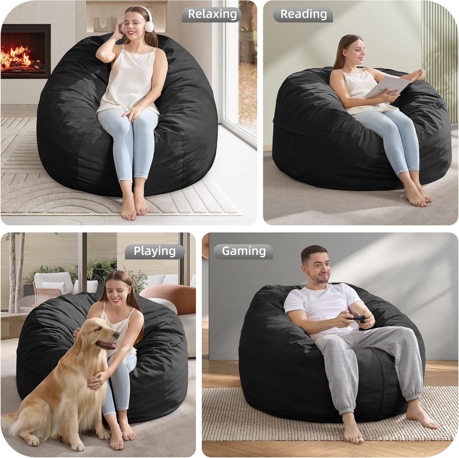 - Versatile Usage: Beanbag chair is the ideal addition to your dorm rooms, living room, bedroom, etc. You can move bean bag chairs with ease, making them ideal for movie night, game night, and reading.