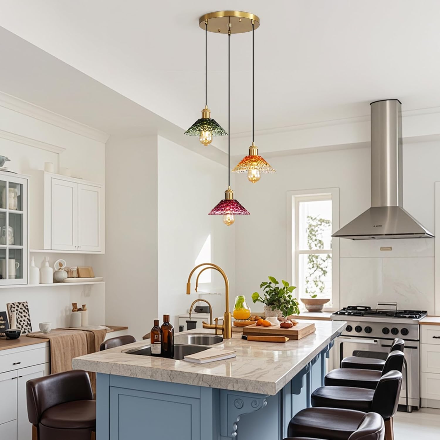 Glass Ceiling Chandelier,3-Light Colorful Hanging Pendant Light,Mid Century Modern Glass Pendant Light Fixture for Dining Room, Hallway, Living Room,Farmhouse,Kitchen Island