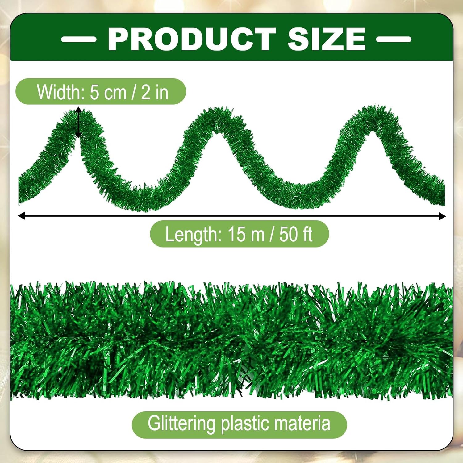 - Package and Size: Package comes with 1 piece christmas tinsel garland, this christmas tree hanging tinsel garland measures approx 15 m/ 50 feet in length and 5 cm/ 2inches in width, long enough to wrap and decorate your christmas tree, show the christmas glamour, whether you're decking the halls or adding sparkle to a special event, this tinsel garland is sure to impress