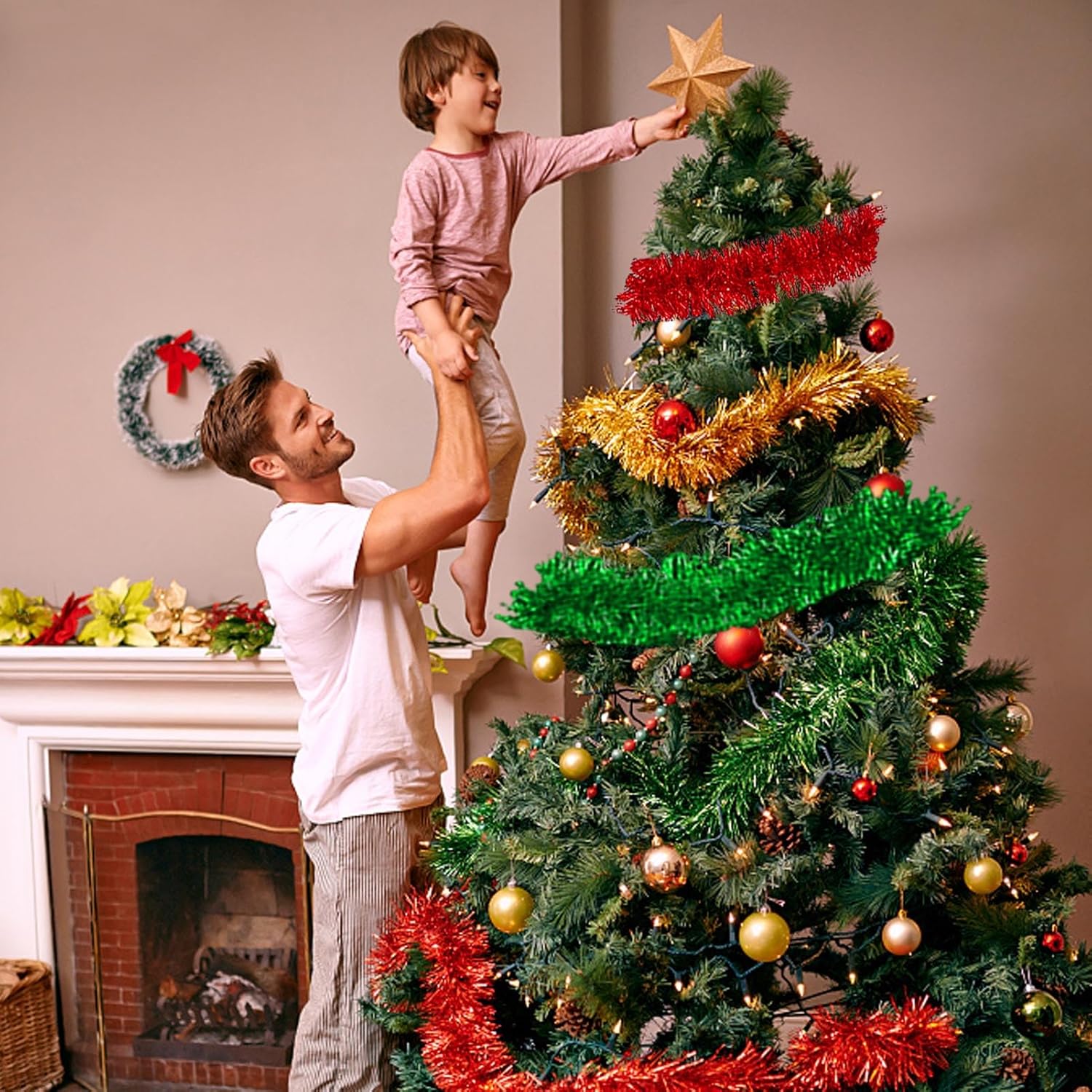 - Easy to Hang: Christmas tinsel garland include a soft, bendable wire inside, and easy to shape as different looks. You can also trim it into different sizes, twist them into various shapes as you like, or with the tape stick it on the wall, window, table, door, rail or any place you like, show the christmas glamour to make your party decoration for the home fun