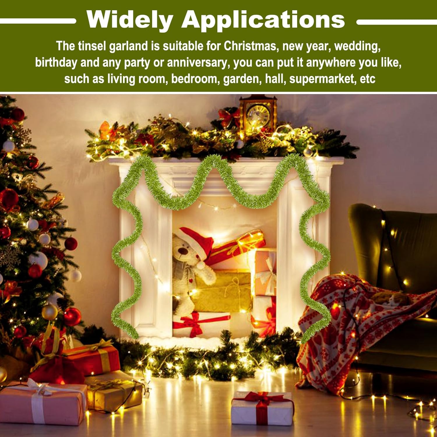 - Easy to Hang: Christmas tinsel garland include a soft, bendable wire inside, and easy to shape as different looks. You can also trim it into different sizes, twist them into various shapes as you like, or with the tape stick it on the wall, window, table, door, rail or any place you like, show the christmas glamour to make your party decoration for the home fun