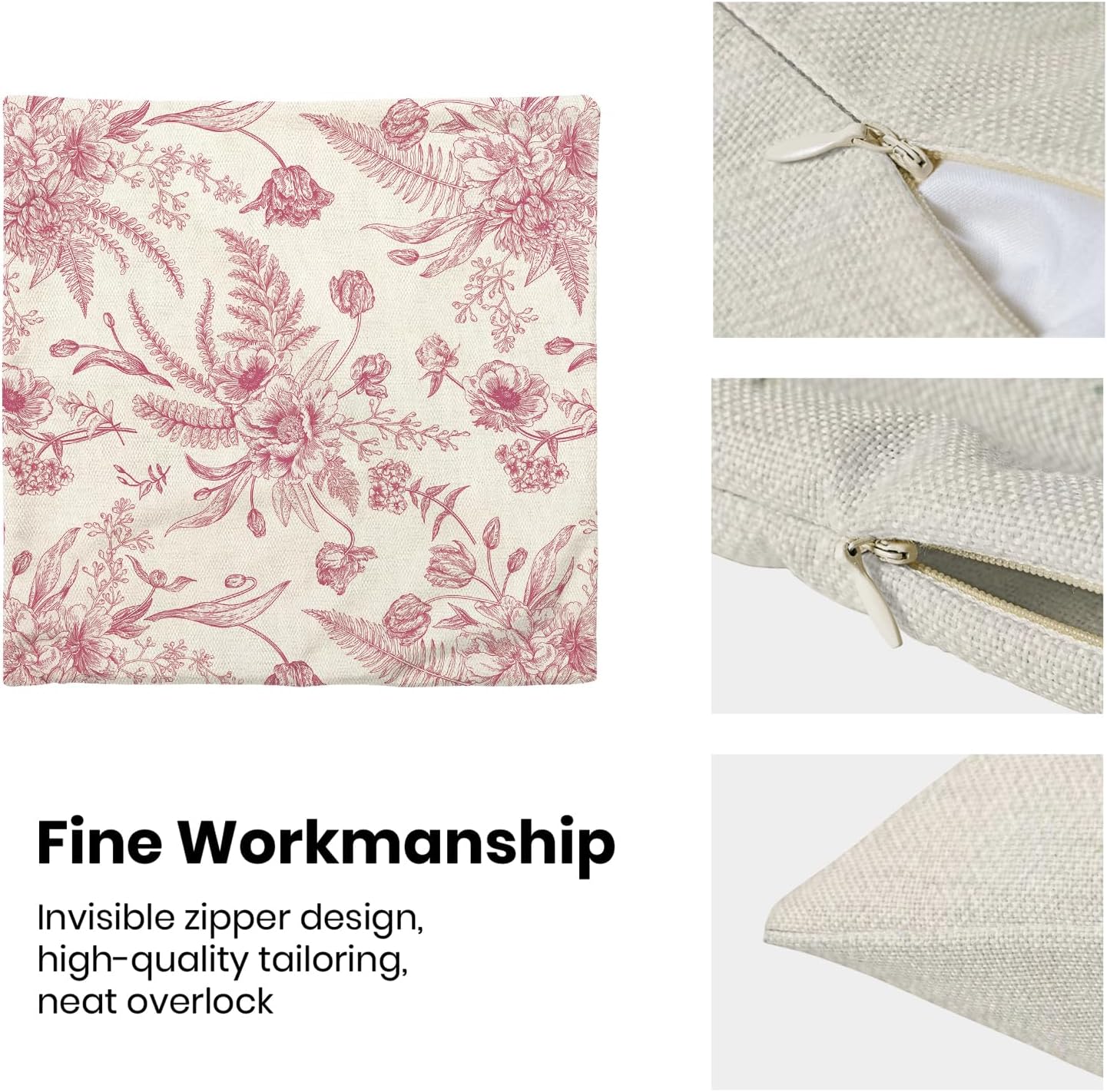 - 【Spring Pillow Covers】 Our Chinoiserie floral throw pillow covers 18x18 inch are made of excellent breathable polyester cotton fabric. The pink and White floral decorative pillow covers is sturdy, soft and skin-friendly. The plant outdoor pillow covers adopt exquisite edging technology and four sides of our floral pillow covers are sewn firmly, which is not easy to open the line.