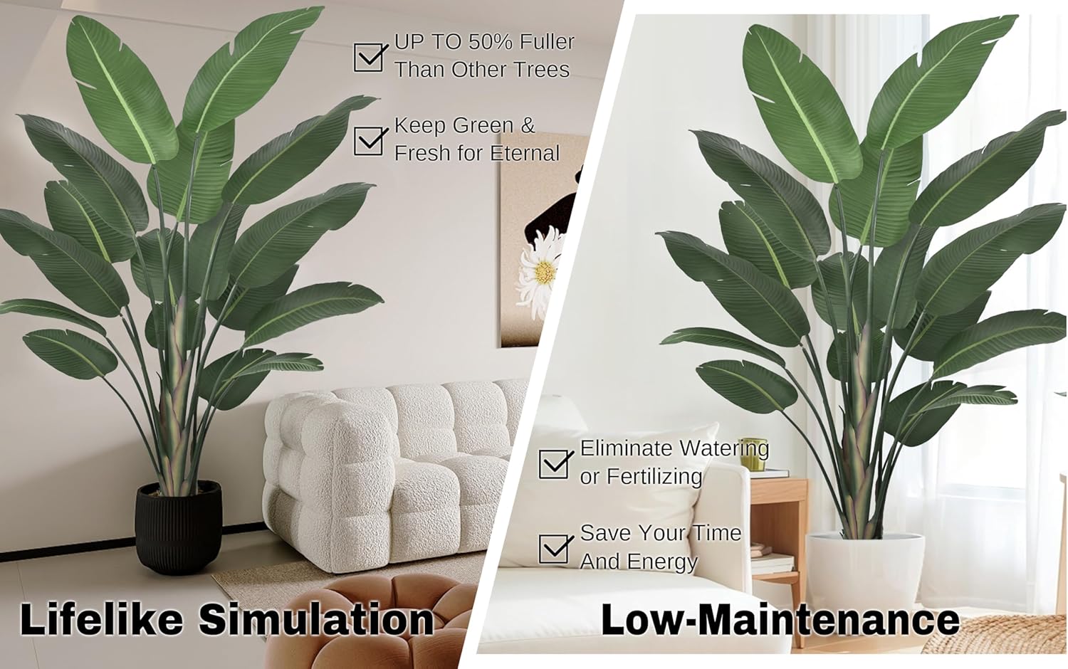 - 【Easy To Assemble】: When you receive the tall artificial plants indoor, simply follow the instructions to install it. You can place the bird of paradise artificial plant in the planter, which will enhance the decorative effect