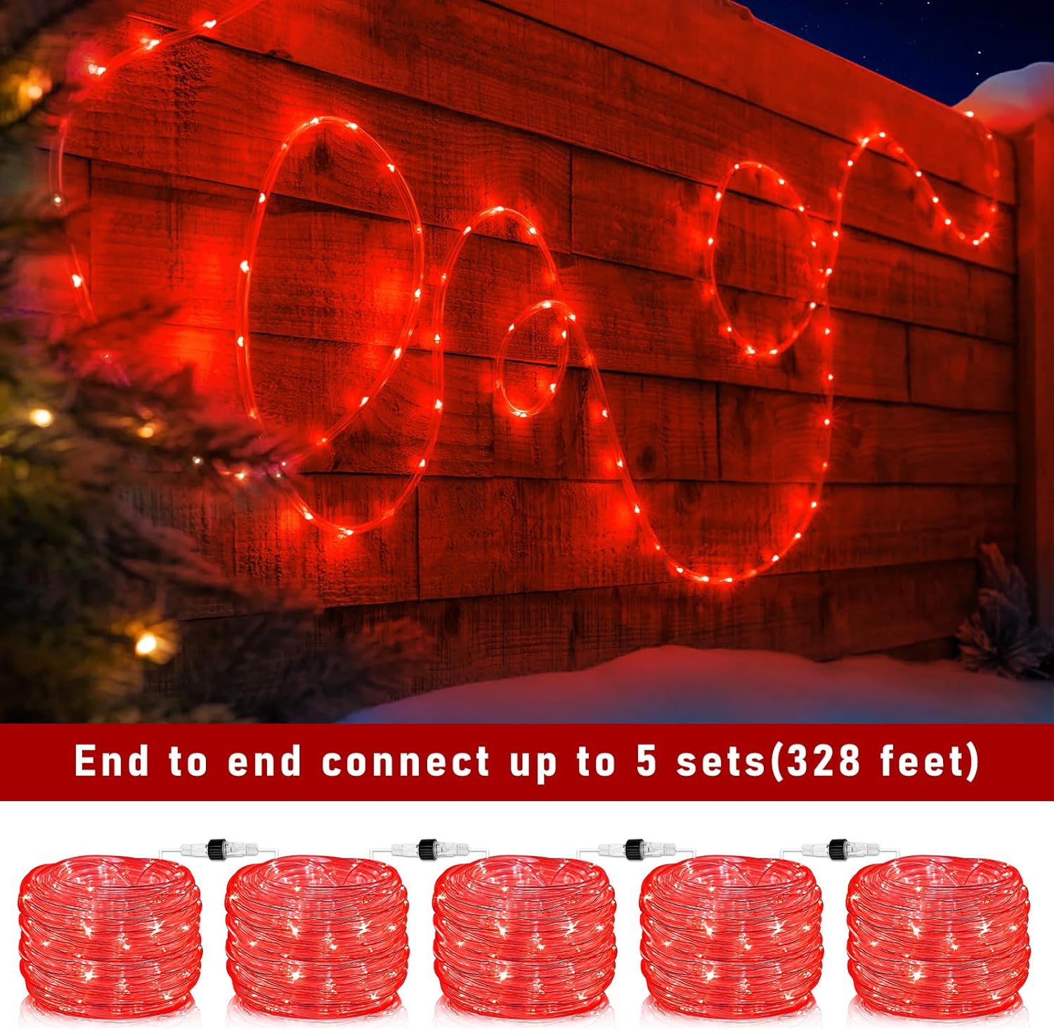 Rope Lights Outdoor, 66FT 200 LED Rope Lights for Indoor with Waterproof 8 Modes, Connectable Clear Tube Lights for Outside, Garden, Backyard, Patio, Deck, Pool, Tree Decorations - Red