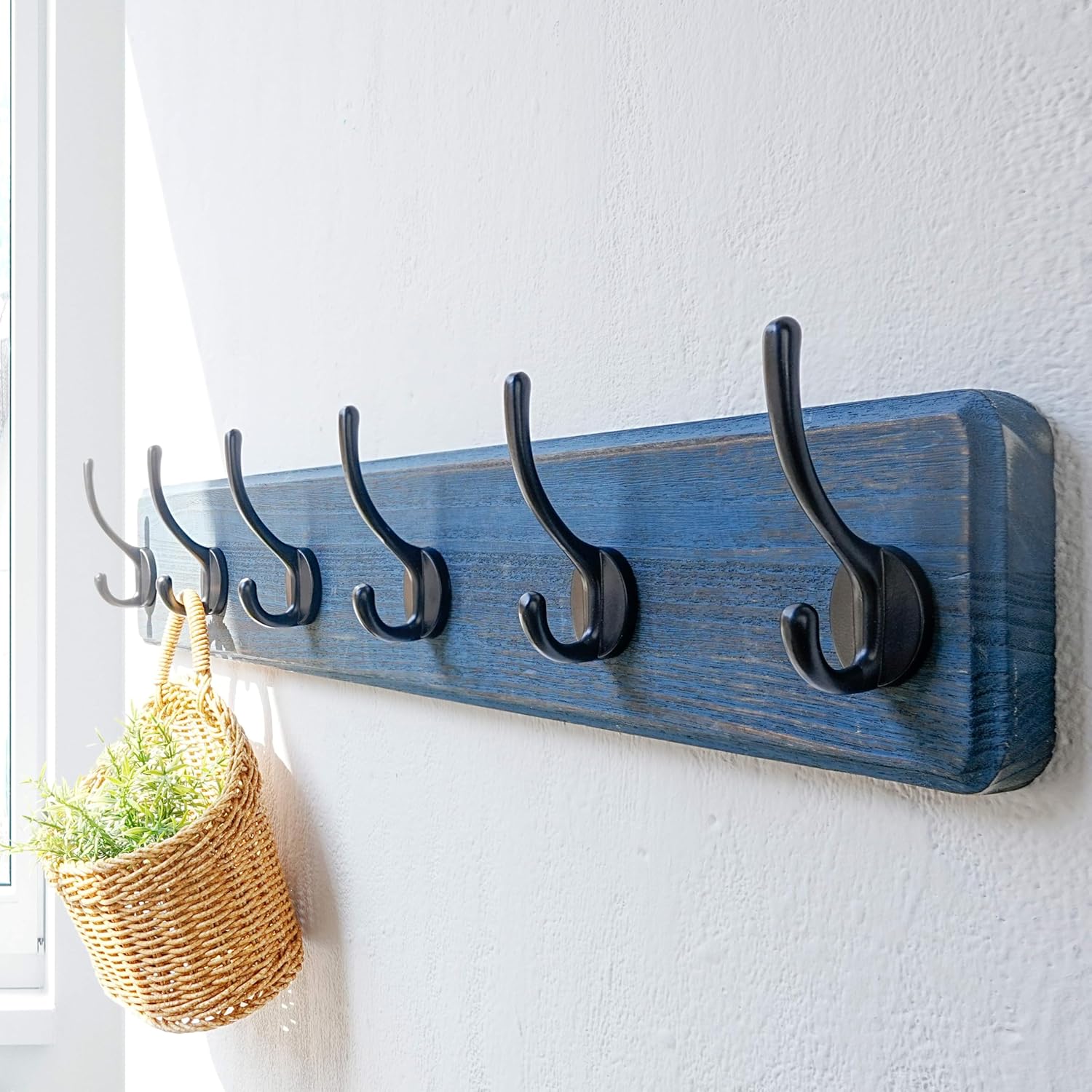 - 【24” LONG & AMPLE HANGING SPACE:】 Boasting a 24” long wood board with 6 dual hooks, this wall coat hanger offers plenty of hanging space.