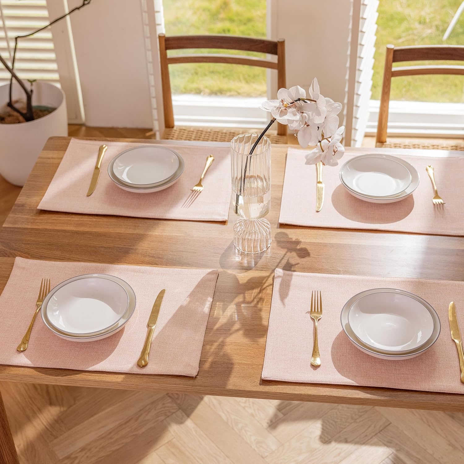 Demetex Pink Placemats Set of 8 Heat Resistant Cloth Place Mats Rectangle Linen Table Placemat for Party Anniversary Wedding, 13x19 inch, Pink