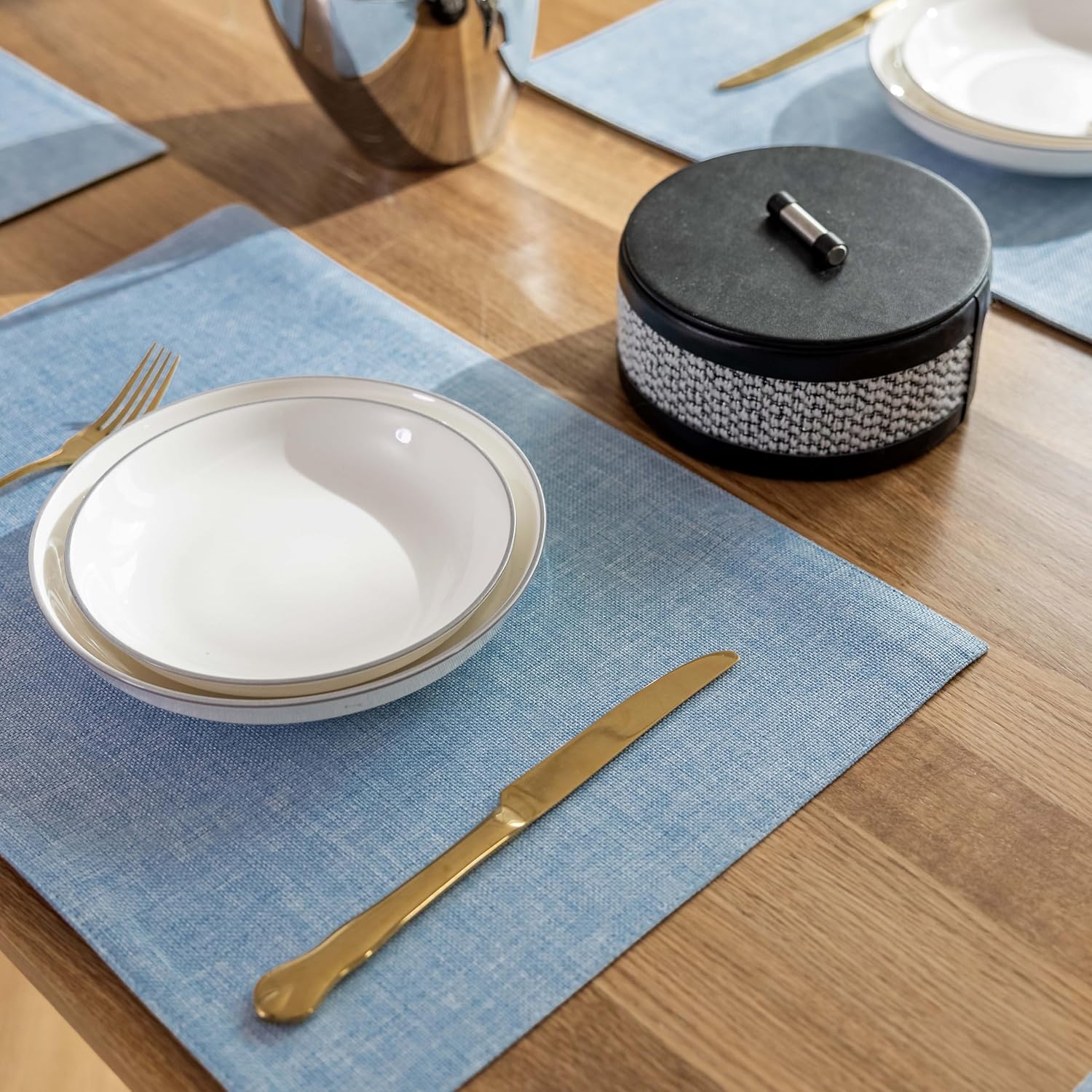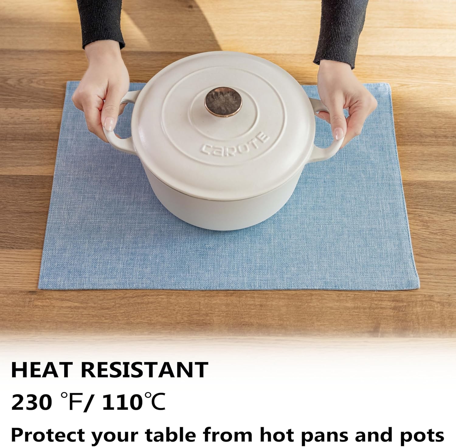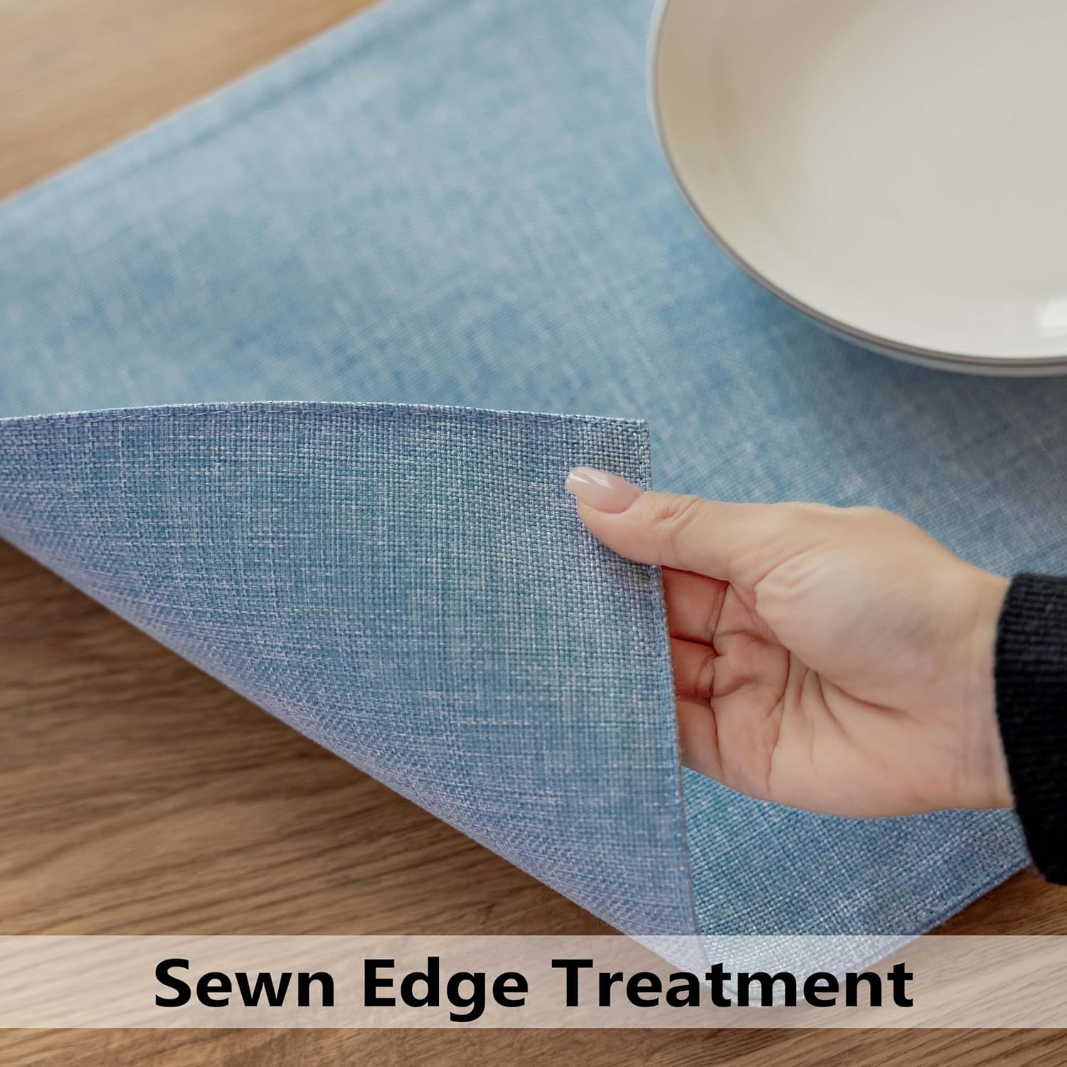 Demetex Placemats Set of 8 Heat Resistant Blue Placemats Soft Washable Linen Place Mats Table Mat for Dinner Gathering Banquet, 13x19 inch, Blue