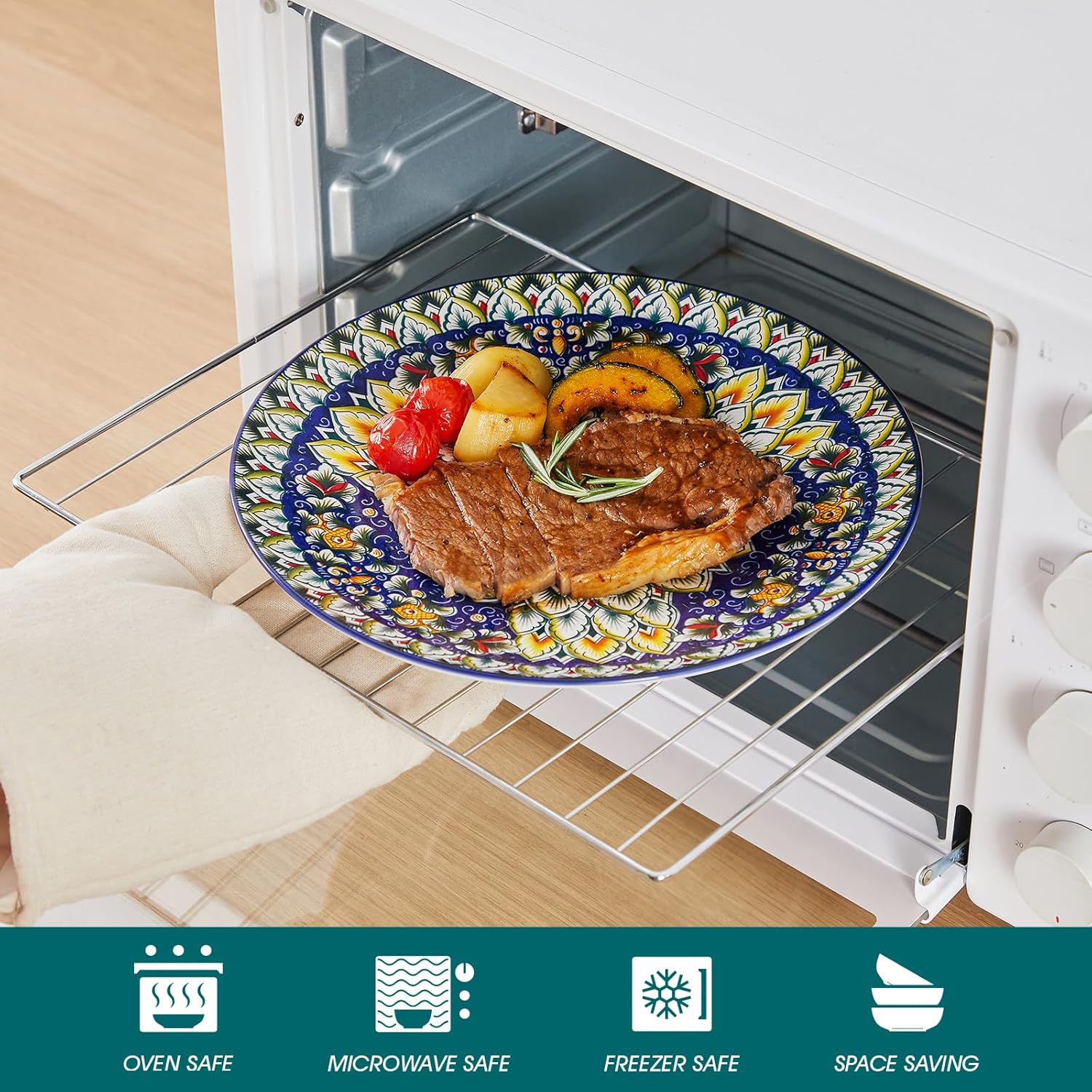 - 【Easy Maintenance and Cleaning】vancasso boho dinnerware sets are designed for easy maintenance. The smooth glaze on the dishes makes them easy to clean, either by hand or in a dishwasher. They are also microwave-safe, allowing for effortless reheating of leftovers or warming up of dishes, providing practicality alongside their beauty.