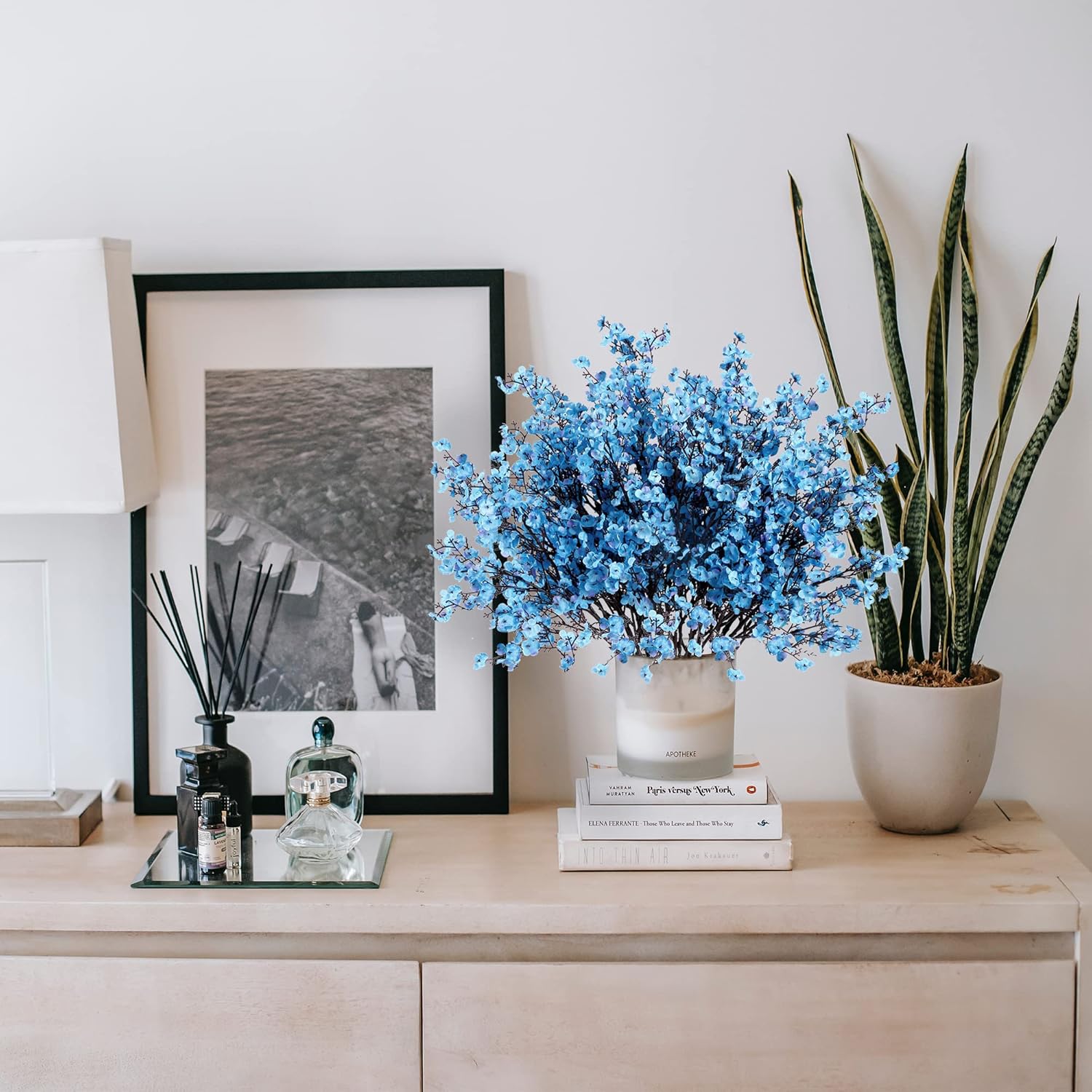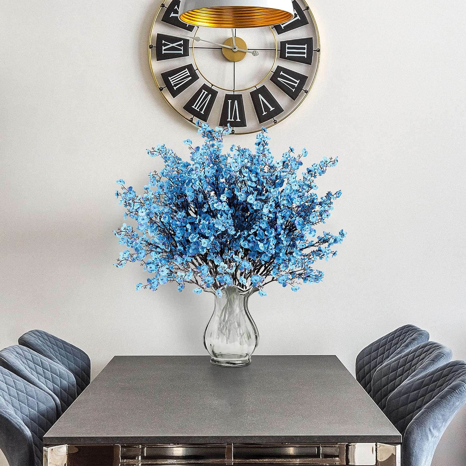 Sggvecsy 10 Pcs Babys Breath Artificial Flowers Gypsophila Bouquets Bulk Real Touch Fake Silk Flowers for Home Wedding DIY Floral Arrangement Kitchen Table Centerpiece Festival Decoration (Blue)
