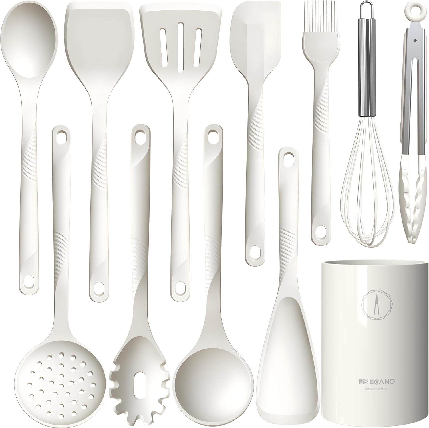 Silicone Cooking Utensils Set - 600°F Heat Resistant, Nonstick Kitchen Utensil Set with Spatulas, Spoons, Whisk, Tongs, BPA Free, Dishwasher Safe, Cream White