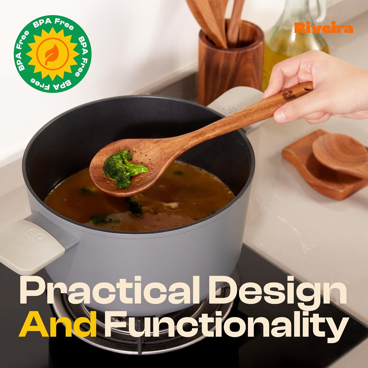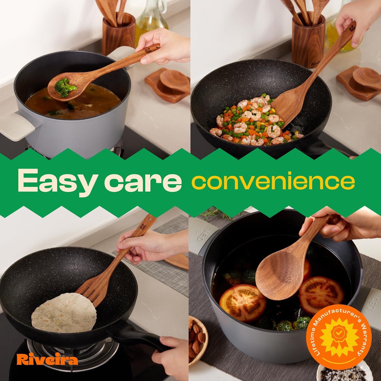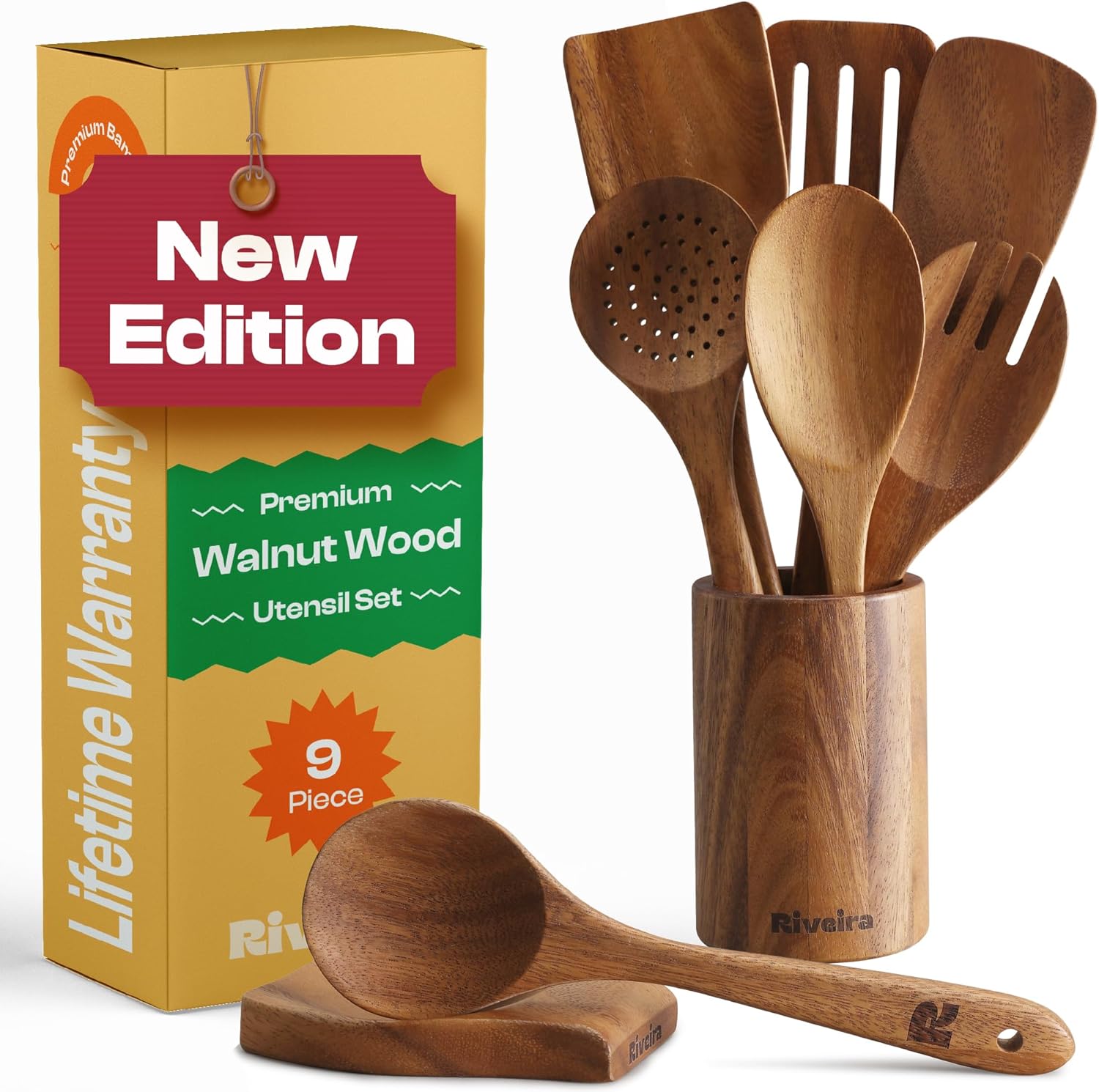 Riveira Walnut Wooden Spoons for Cooking Set of 9 – Natural Walnut Wooden Cooking Utensils, Wooden Spatula, Wooden Spoon - Premium Quality Wooden Utensil Set for Non-Toxic Cooking