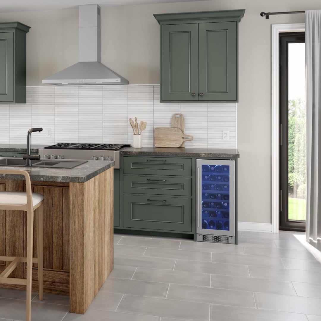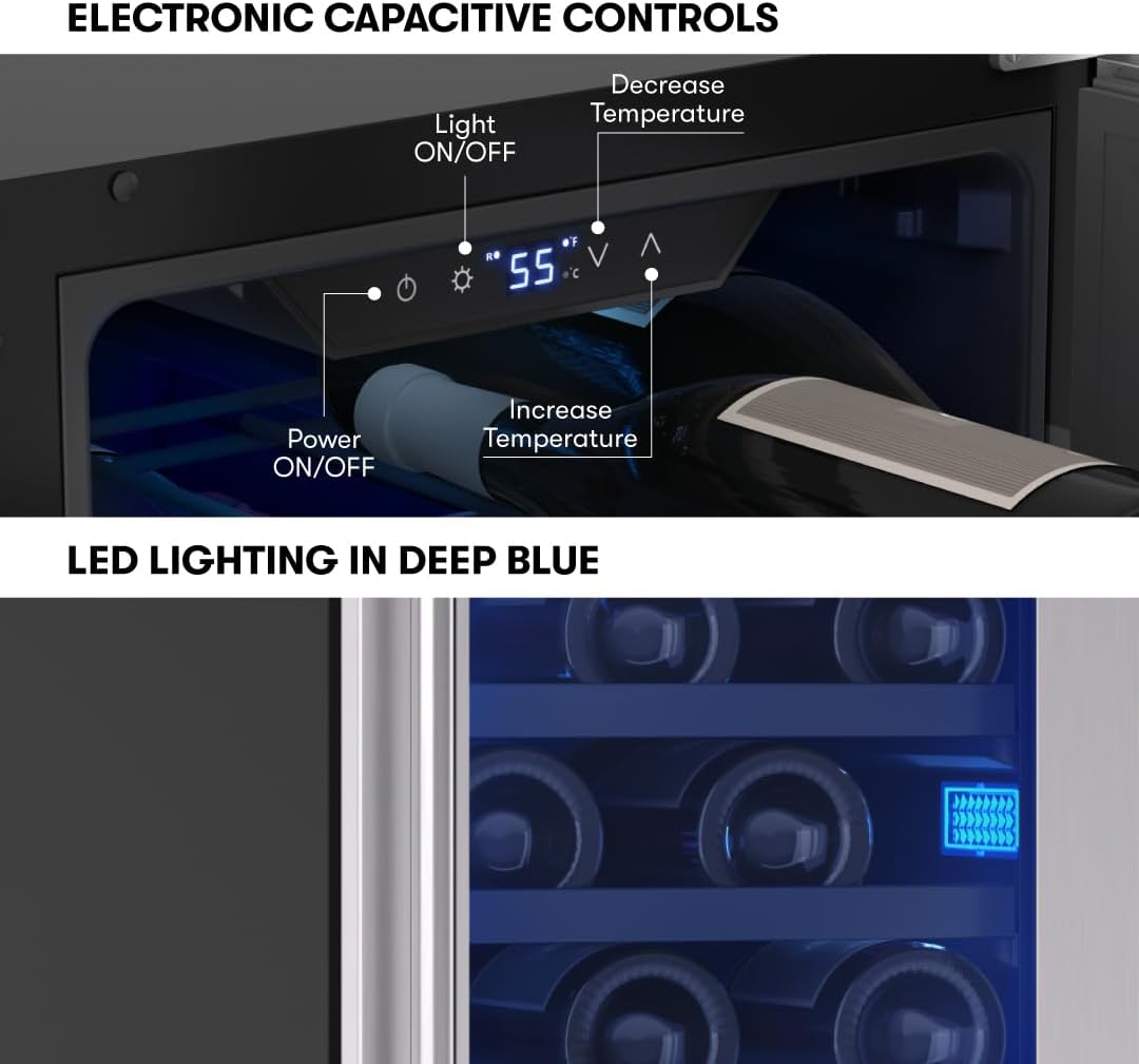 Zephyr Brisas 15 Inch Slim Wine Fridge Single Zone Under Counter - Narrow Mini Wine Cooler Small Cabinet Wine Refrigerator Home Bar Freestanding with Glass Door - 28 x 750ml Bottles