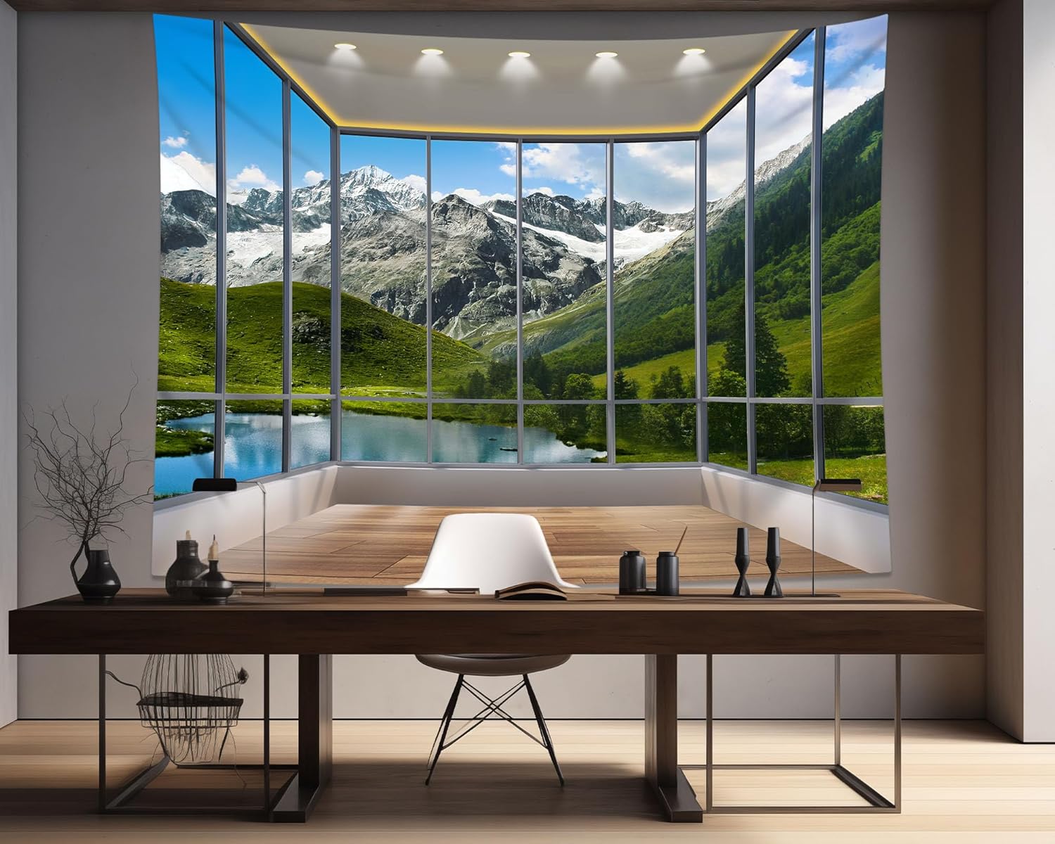 dueeia Window Tapestry Wall Hanging Mountain Forest Lake Nature Landscape Wall Tapestries for Bedroom Office Living Room Wall Decor (90.6"x70.9")
