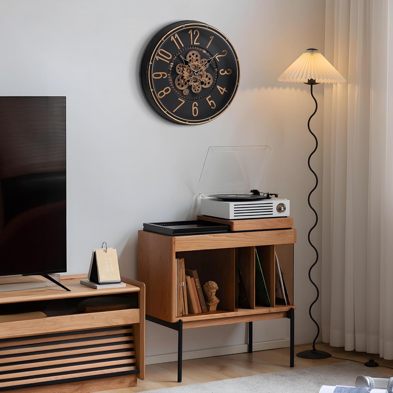 - [Silent Wall Clock ] Precision and Quiet Movement,based on high-torque, quality quartz movement, it function as beautiful wall decor pieces besides telling time, and bring both style and purpose to any room. Sit and watch the time fly by with this stunning gear clock.