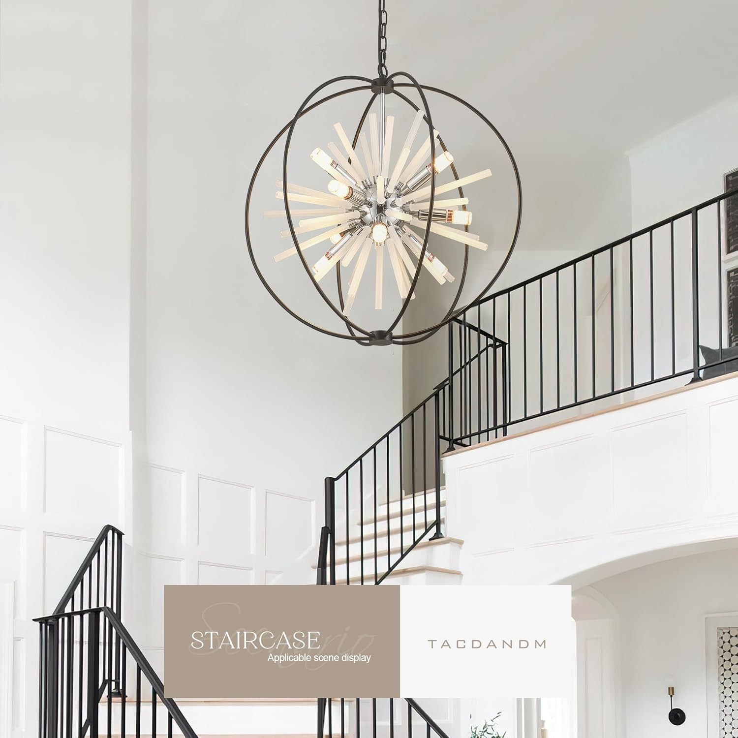 - 【Stylish Creative Design】Black Globe Sputnik Crystal Chandeliers advanced plating chrome surface treatment and black metal sphere lantern, Crystal Glass Tube design, and simple 12 Lights, It can be dimmable when you used with a dimmable bulb and compatible dimmer switch. It is not just a light for lighting, but also an art for decorating, looks like fireworks. Discover a world of exquisite illumination with our modern chandeliers, where contemporary meets vintage in perfect harmony.