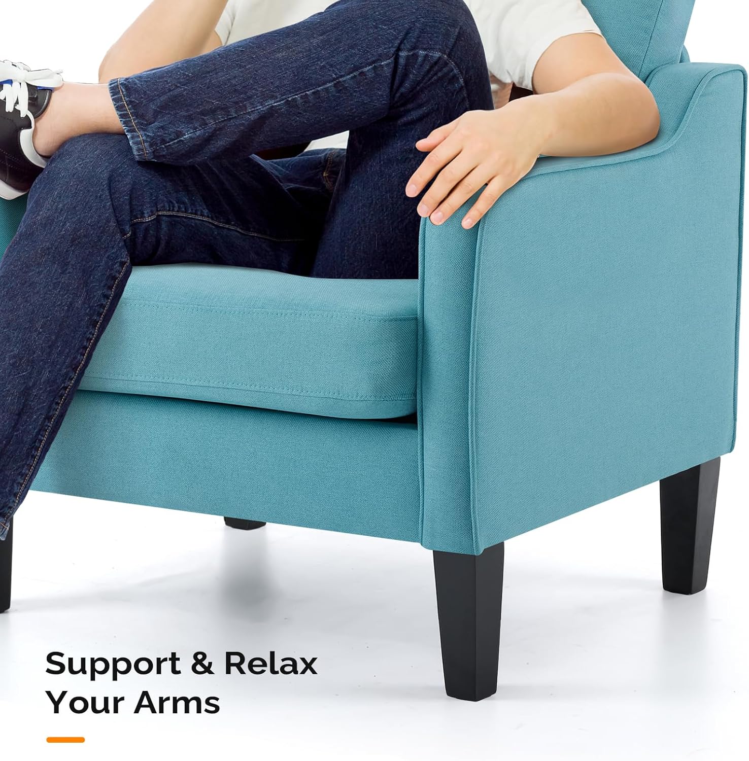 - Built for Stability and Durability--This living room chiar features breathable linen materail, resilient foam cushions with steel springs, a sturdy metal backrest, wooden frame, and solid wood legs. It provides exceptional stability and seating support, boasting a weight limit of 380lbs ensuring a comfortable experience.