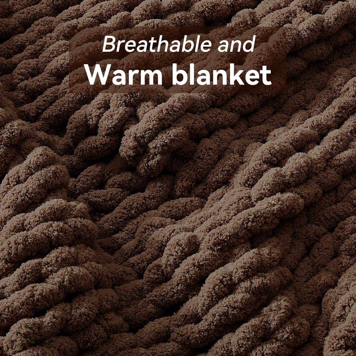 Chunky Knit Throw Blanket, 30''*40'' Knitted Throw Chenille Yarn for Bed Couch, Handmade Dark Brown Crochet Big Thick Blanket, Machine Washable Cute Comfy Blanket for Home Decor