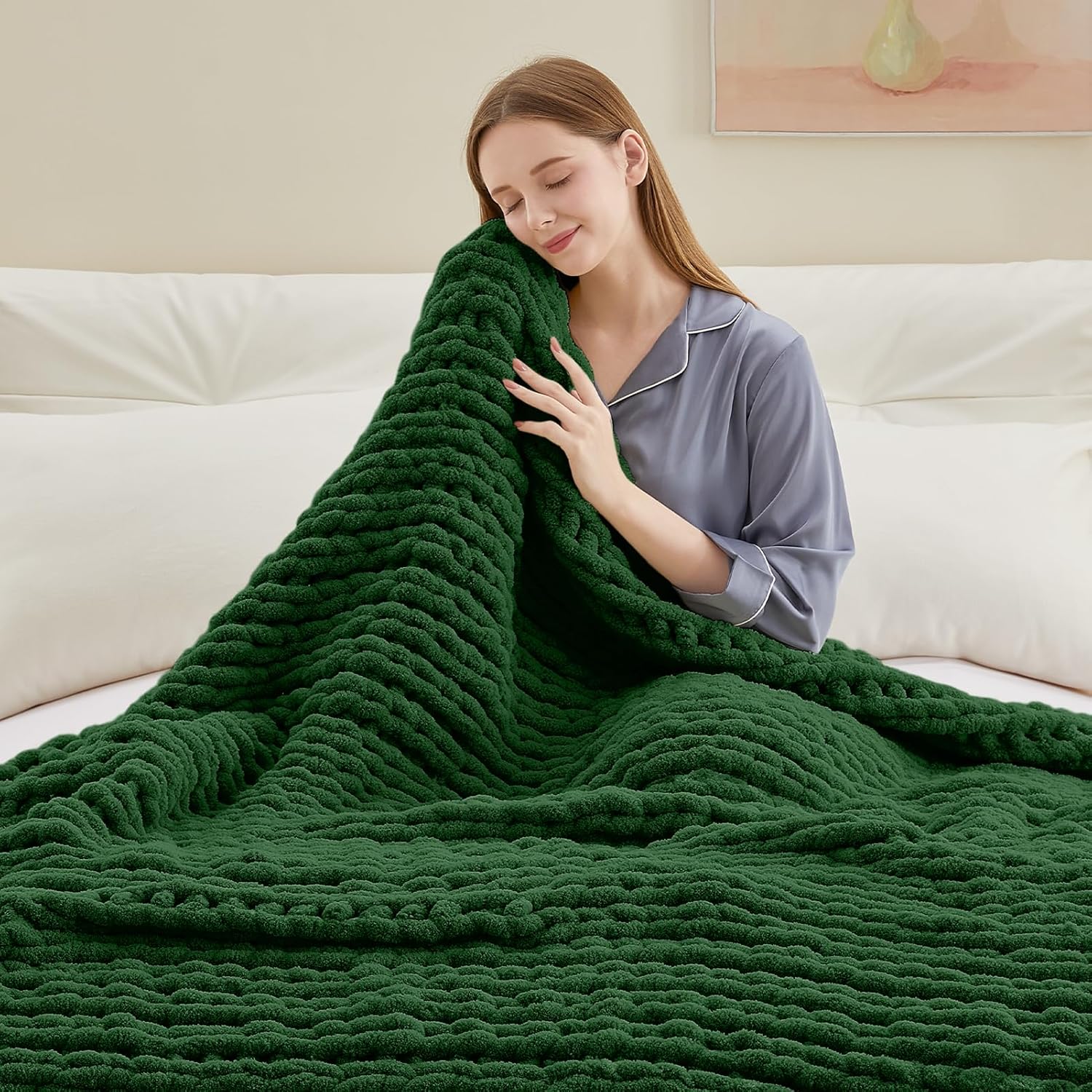 - LUXURIOUSLY SOFT CREAM THROW BLANKET - Crafted from premium Chenille yarn, Negwoo chunky knit blanket is handwoven to ensure it won't irritate your skin. The meticulous handcrafted knitting enhances yarn density, providing a warm, velvety touch that envelops you in sheer tenderness. Note: It is both dry-cleanable and machine washable, ensuring convenience and longevity