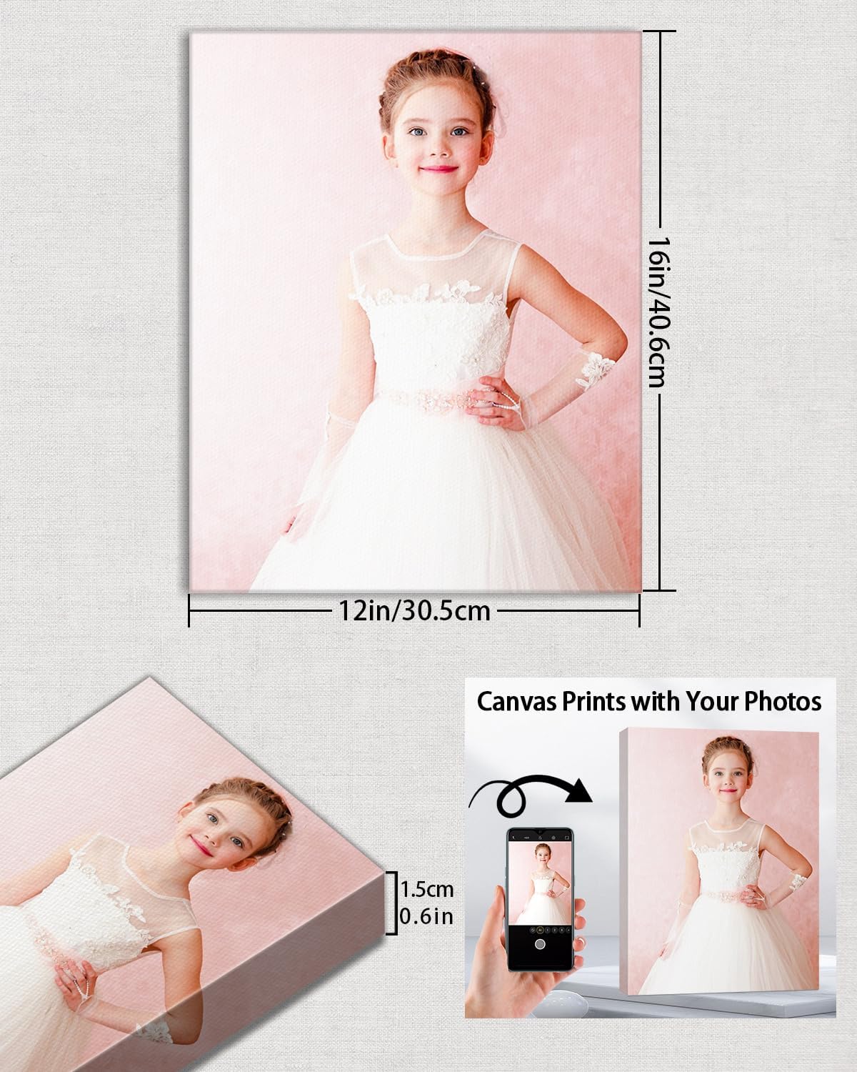 AbcCustomize Canvas Prints with Your Photos, Custom Canvas for Living Room and Bedroom Decor, Personalized gifts for Friends Lover and Family, Canvas Wall Art for Gifts & Keepsakes, Ready to Hang