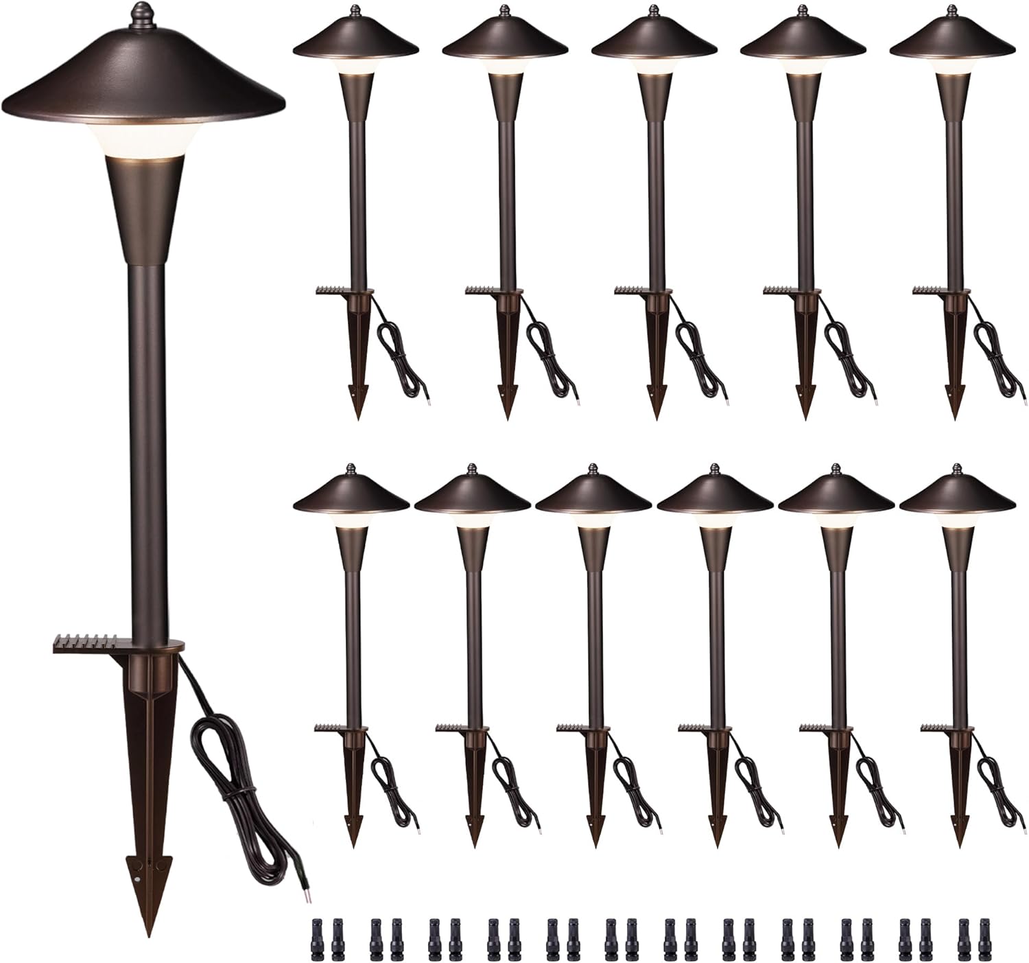 Pathway Landscaping Lighting, Low Voltage 5cct Modes Garden Path Light LED 12V, Outdoor Waterproof Sidewalk Lights, 5W 200LM Oil Rubbed Bronze Aluminum for Outside Walkways Yard (12 Pack)