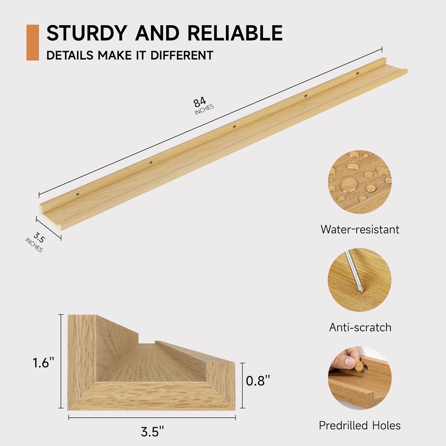 Floating Picture Ledge Shelves for Wall Set of 2, 84 Inches Picture Ledge Shelf with Long Large Nursery Book Shelf for Toys Storage Kids Bookshelf Wall Mounted Living Room Bedroom Decor Frames, Oak