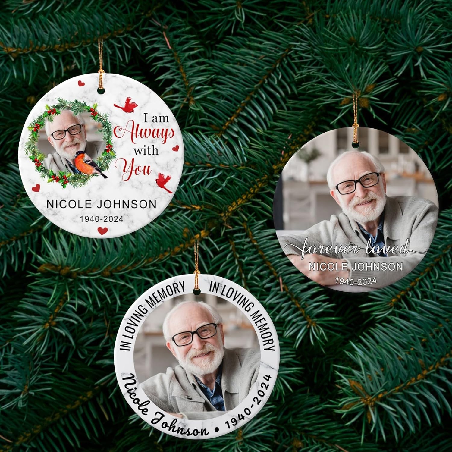• HIGH QUALITY MATERIAL:Customized memorial photo ornaments for Christmas tree are made of high-quality ceramic.Size:2.9".Personalized Christmas ornaments 2025 are double-sided color printed, using HD printing technology to create vivid and rich patterns on the ceramic surface,the printed text and picture is not easy to fade. Customizable Christmas ornament is lightweight, easy to carry or give as gifts