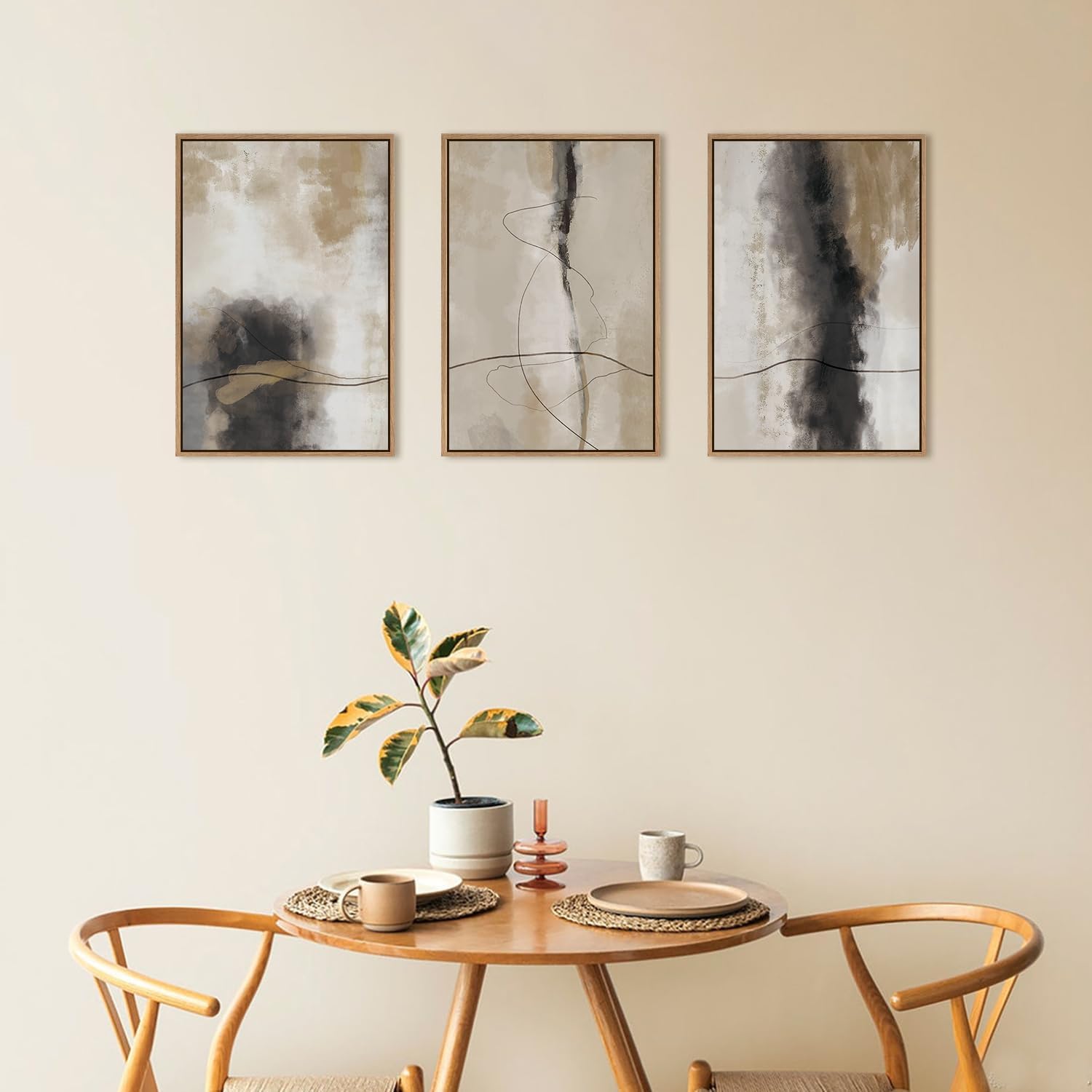 HPINUB Large Modern Abstract Shapes Framed Canvas Wall Art Set,Neutral Black and White Wall Decor,Minimalist Nordic Wall Painting for Living Room,Bedroom,Dining Room,Office -24"x36"x3