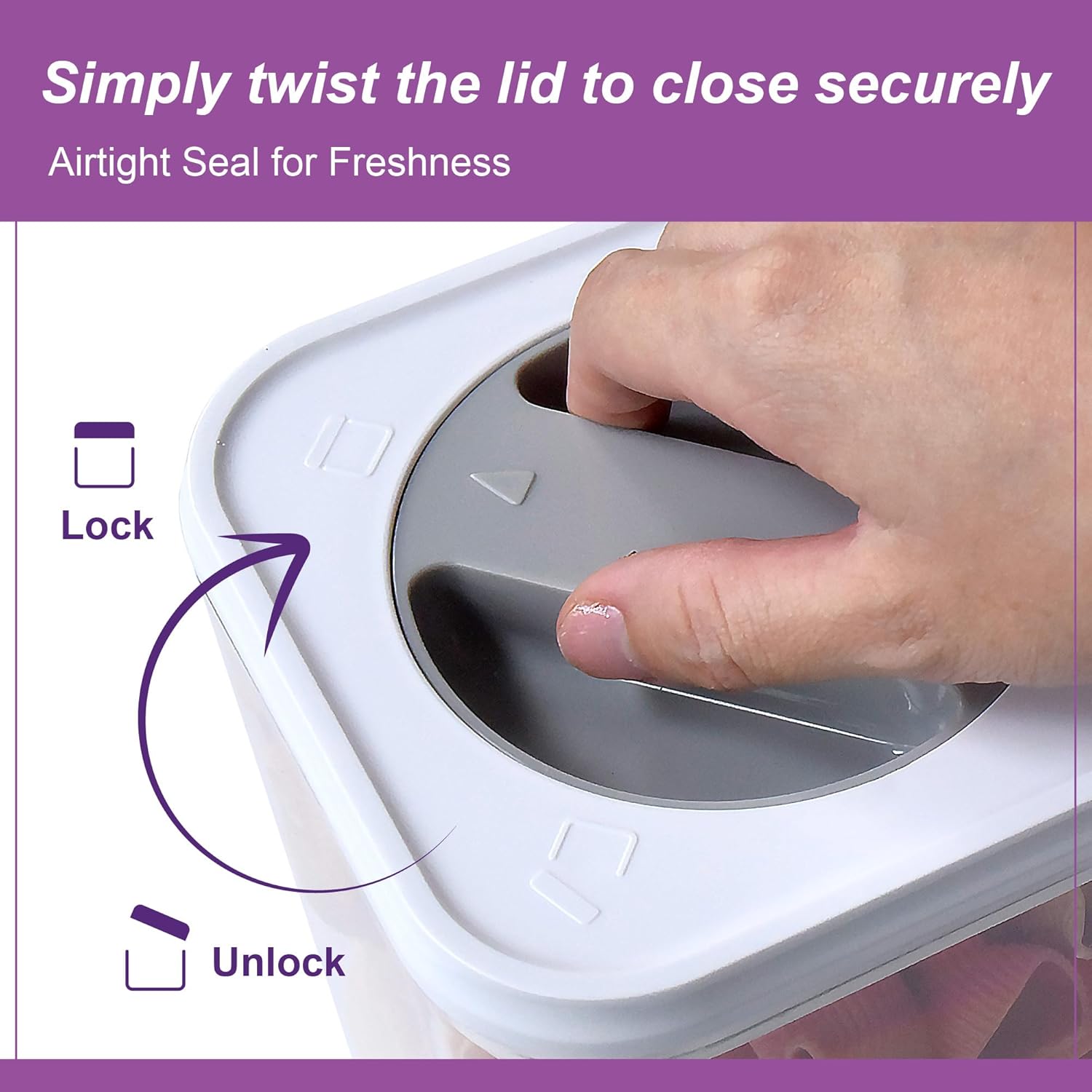 - [FRESHNESS IN] The silicone seal makes the canister airtight to keep in all the freshness, making it good storage for flour, sugar, cereal, pasta, coffee, tea, cookies, chips, nuts, snacks, and more. The stacking design makes it a super space saver for your kitchen and pantry shelf.