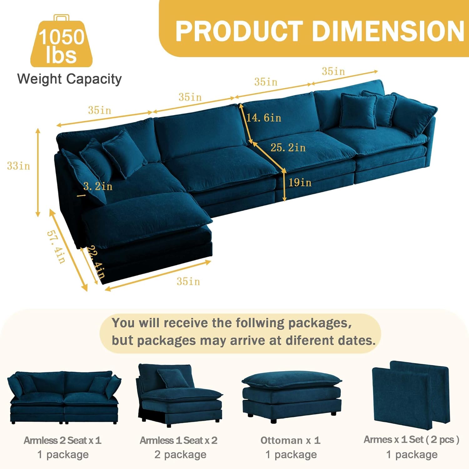 - Premium Comfort & Customizable Sizing: Available in 146.5" U-Shape, 146.5" L-Shape, 111.5" U-Shape, 111.5" L-Shape, and 76.7" L-Shape, this modular sectional sofa adapts to any room size. Featuring ultra-plush 29-layer chenille cushions with high-resiliency foam, it offers cloud-like softness whether lounging, sitting, or napping. Perfect for living rooms, apartments, offices, or dorms.