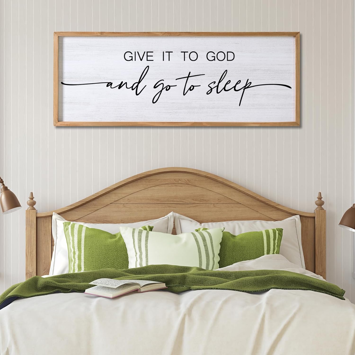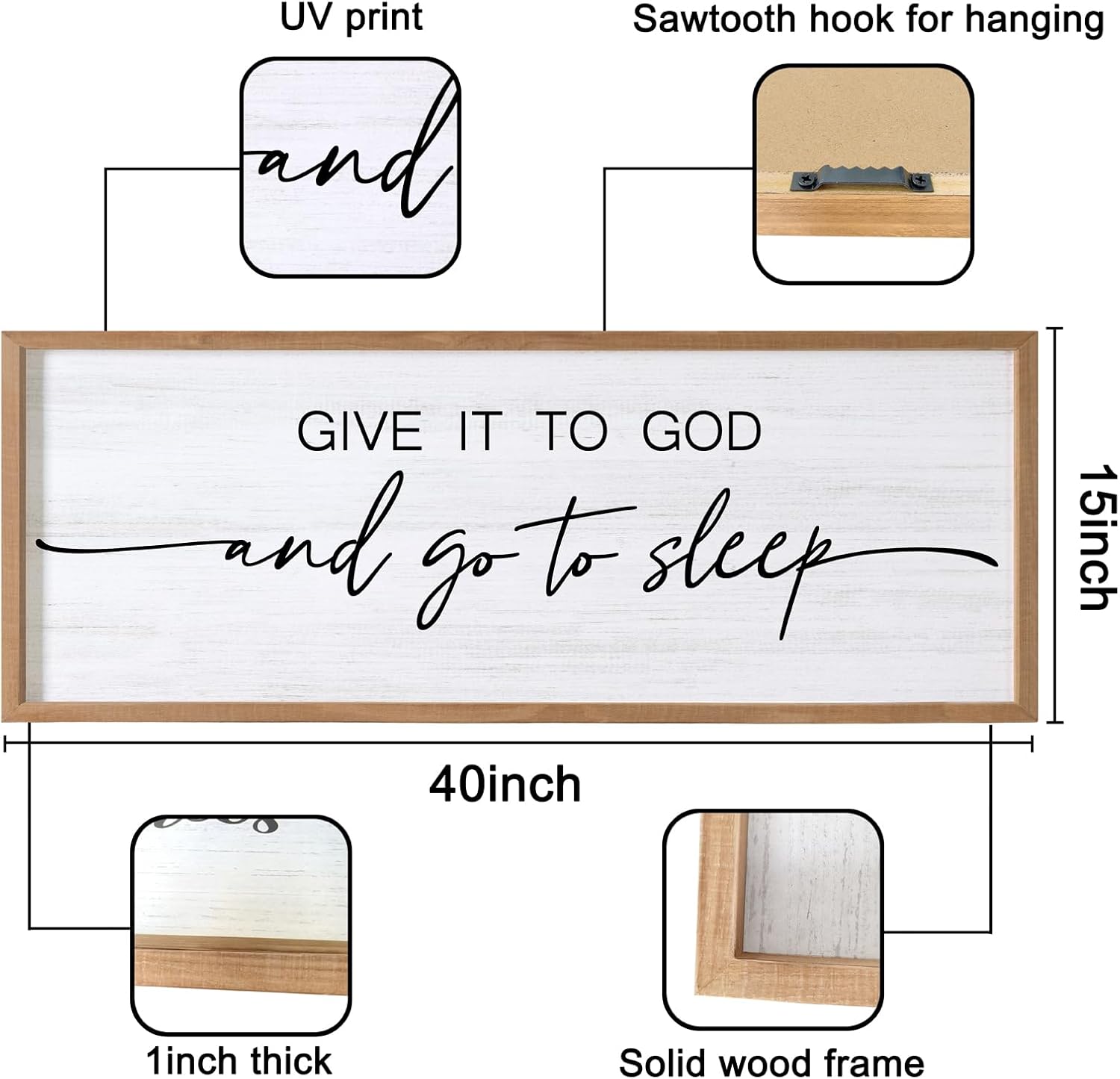 Give It to God and Go to Sleep Decorative Rustic Sign & Plaque Framed Wall Art for Couples, 40''×15'' Vintage Cottagecore Wooden Horizontal Wall Decor Above Bed, Farmhouse Wedding Gift for Bedroom