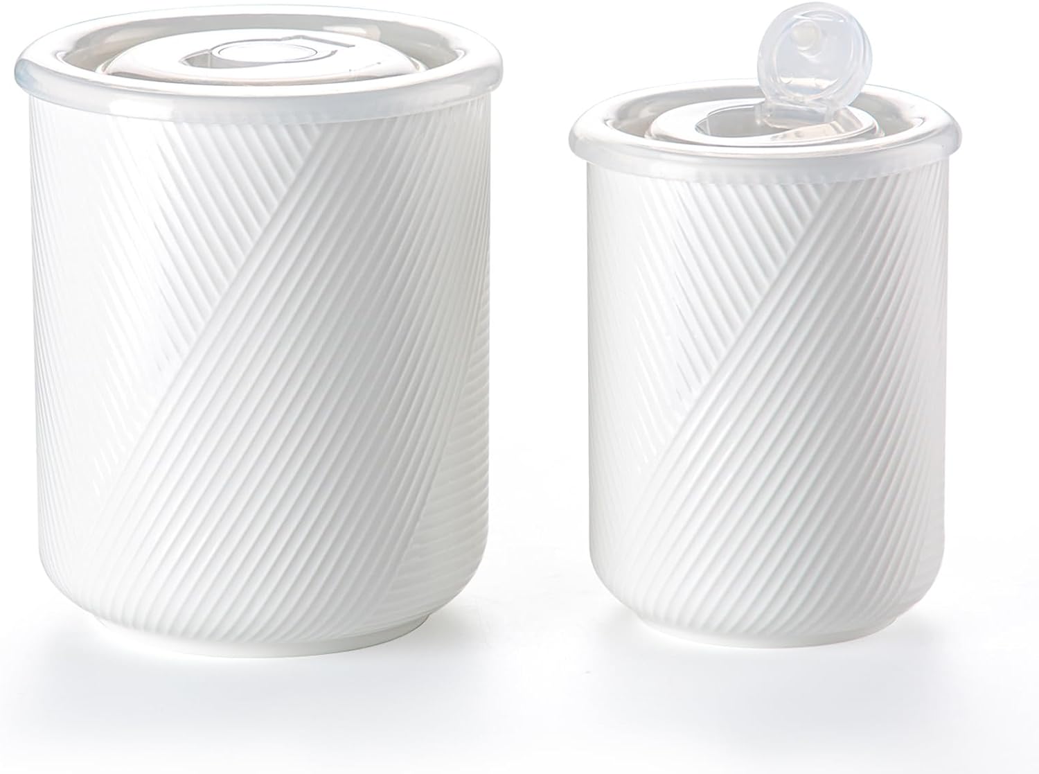 Food Storage Containers with Airtight Lids: Ceramic Canister Sets for Kitchen Countertop - Porcelain Jar for Coffee Tea Flour Sugar Rice Cookies Candy - White (23+42 oz)
