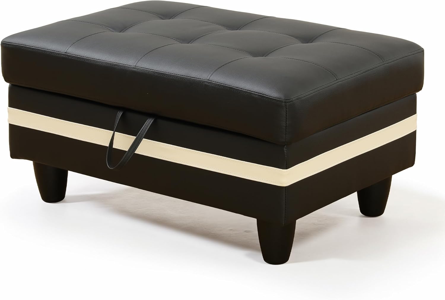 Ottoman Rectangular Storage Ottoman Bench, Faux Leather Footrest, Coffee Table, Stool Footstool with Hinged Lid for Living Room, Bedroom, Entryway, Black with White Strip, 35"x23.5"x17.5"