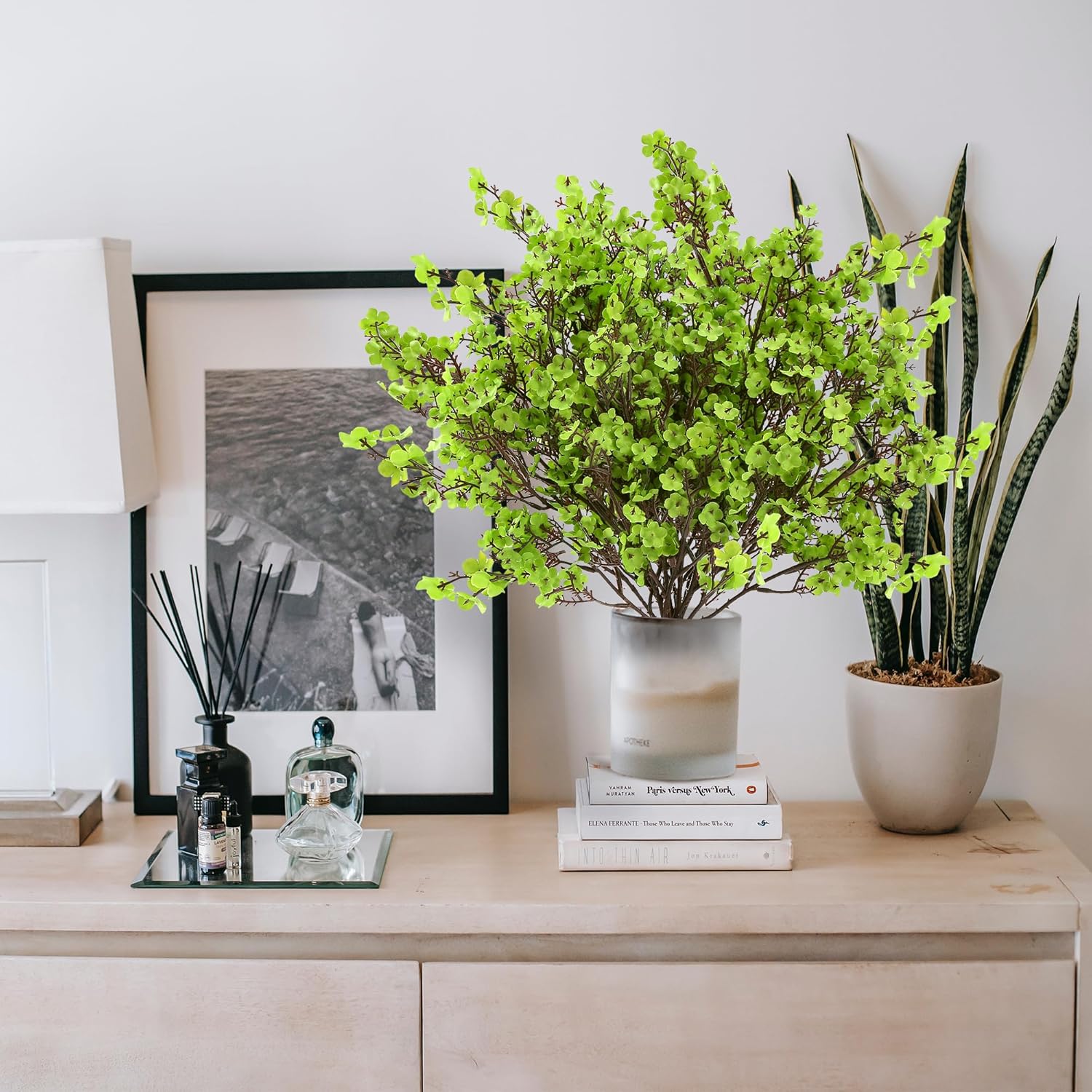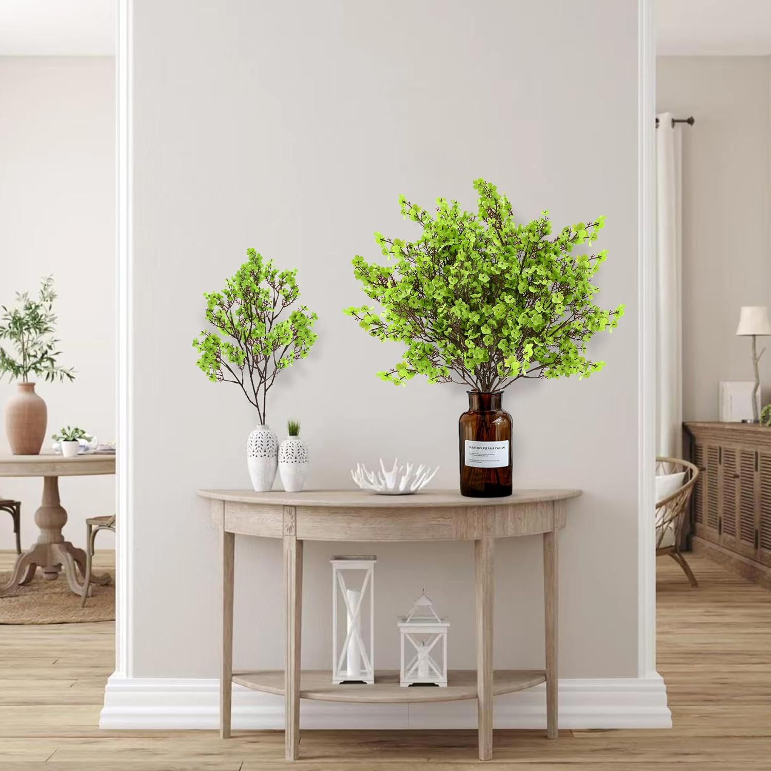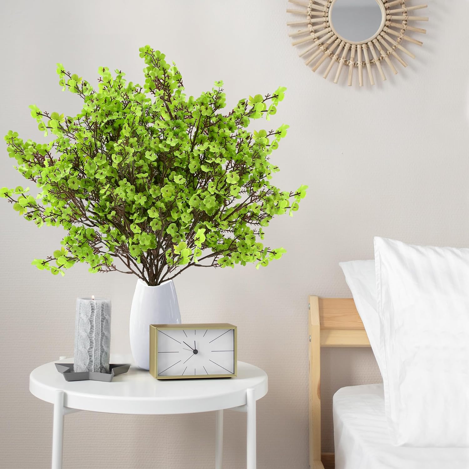 - [PREMIUM MATERIAL]: The babys breath artificial flowers are made of environmentally friendly plastic and silk, wire wrapped with plastics is used for firmness and angle-adjustable in creating the stems.