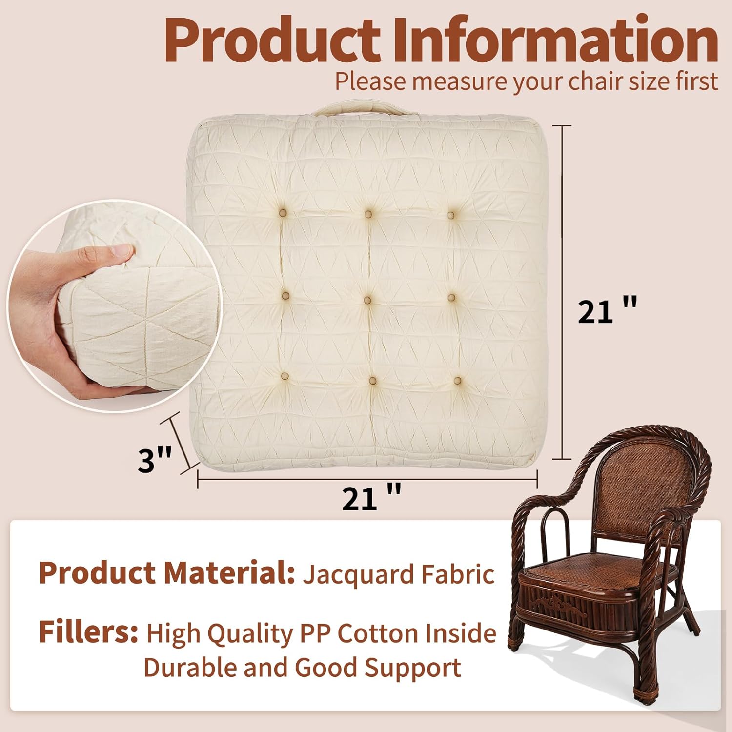 - 【Design】Jacquard fabric, fashion unique pattern makes the cushion look more beautiful, in addition, each cushion has 9 button clusters, so that the stuffing is fixed in place and providing good support. There's a handle to pick it up easily.