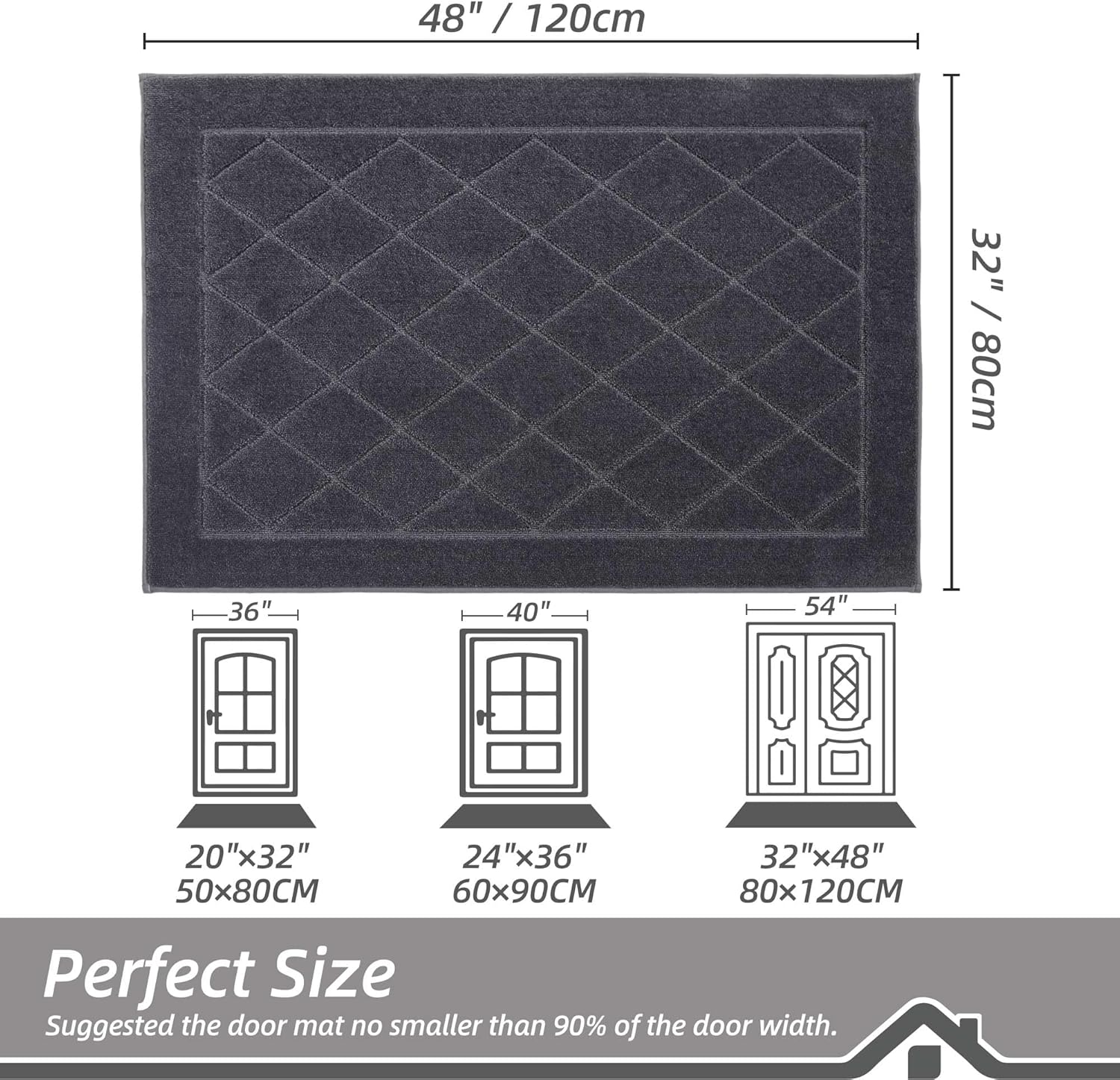 BEQHAUSE Dirt Trapper Door Mat 32" x 48", Doormat Non-Slip Entryway Rugs Washable, Dog Door Mat Stain Resistant and Absorbent Welcome Floor Mat for Front Back Door, Muddy Wet Shoes & Paws, Dark Grey