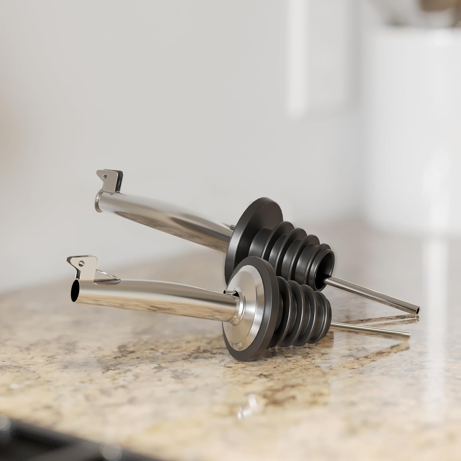 New England Stories Kitchen Cooking Oil Dispenser Set, Olive Oil and Vinegar Bottles, Soy Sauce Dispenser - 4 Pieces, Silver, Durable & Stylish Design