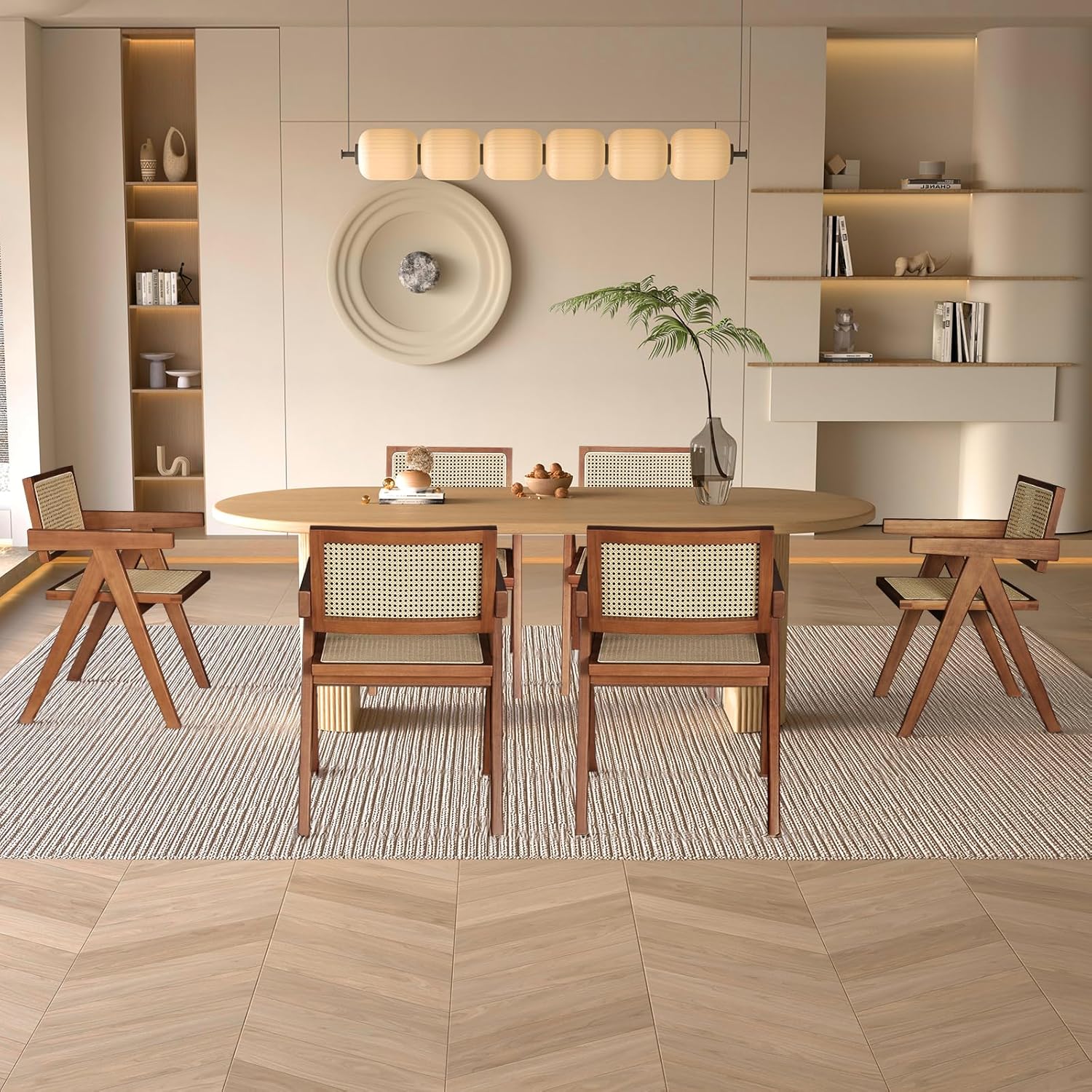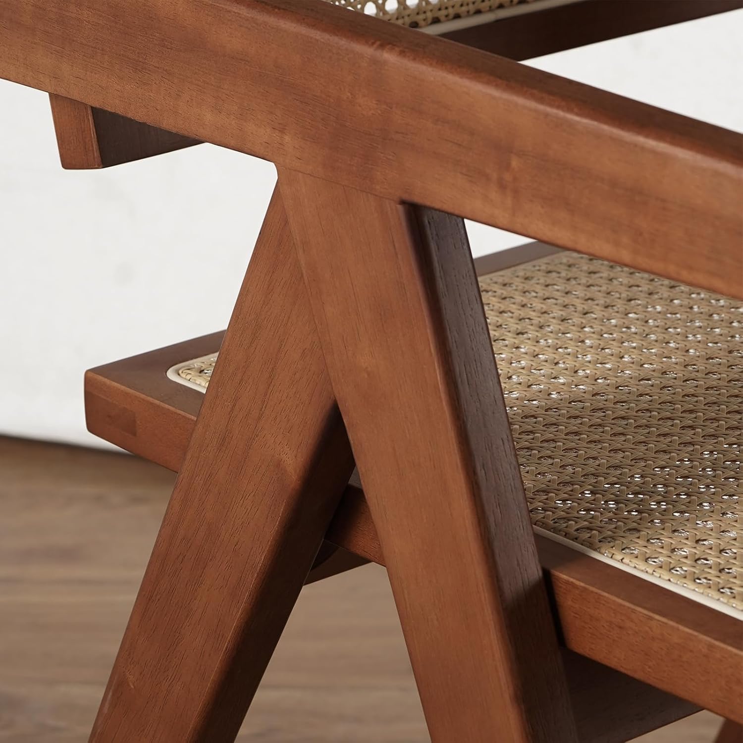 Rattan Walnut Mid Century Modern Dining Chairs Set of 6, Comfy Armchairs with Cane Back, Outdoor Kitchen Chairs for Multiple Rooms