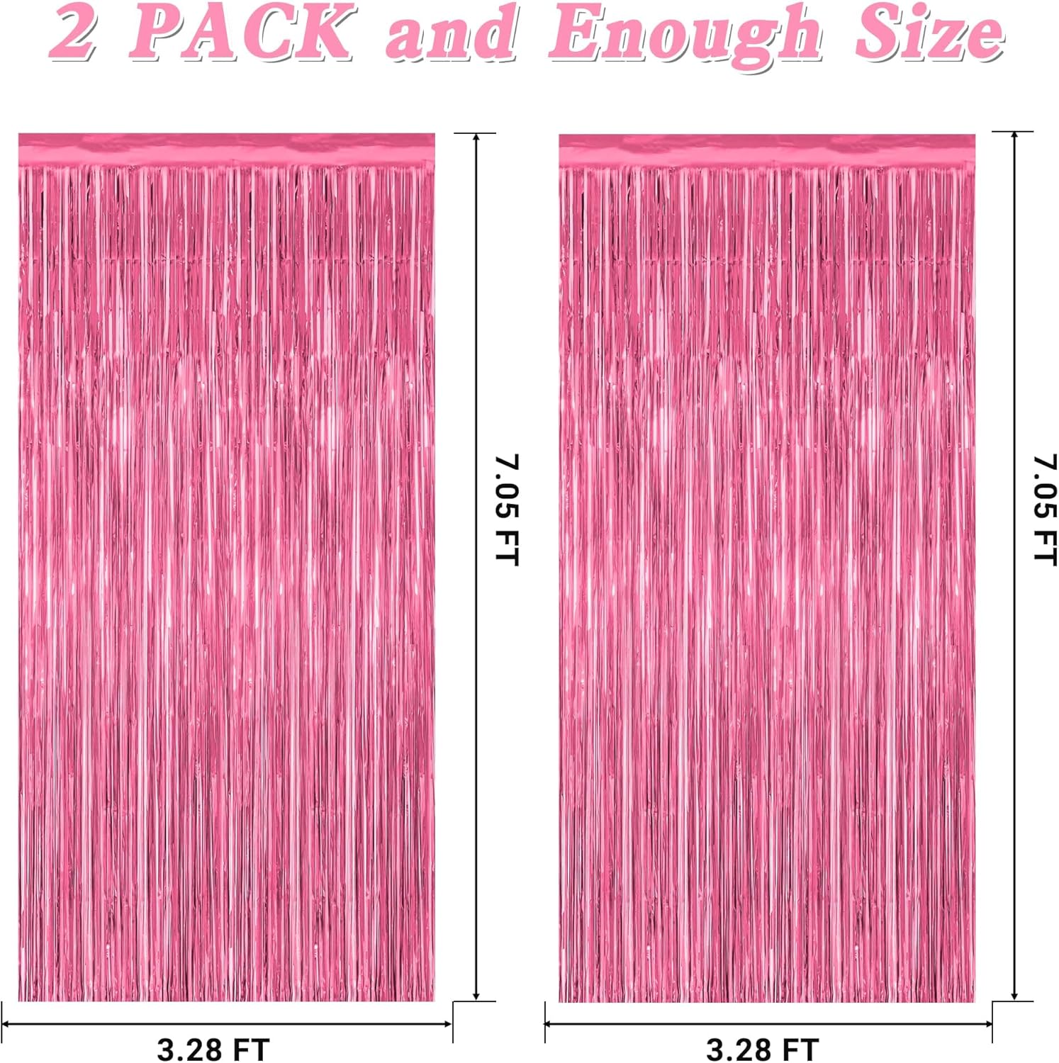 2 Pack Pink Party Decorations, 3.28 FT x 7.05 FT Pink Backdrop, Metallic Tinsel Backdrop Fringe Curtains Backdrop Curtains, Photo Backdrop Party Supplies Birthday Party Decorations