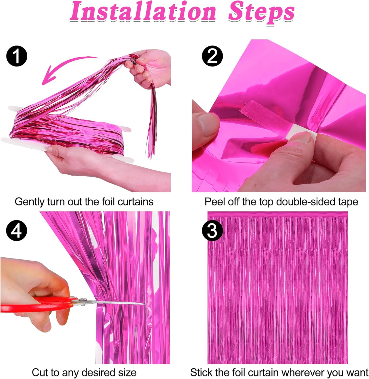 - Easy Installation: Installation is straightforward with the self-adhesive strip located at the top of each hot pink backdrop curtain. Simply peel and stick to the desired area for an instant setup.