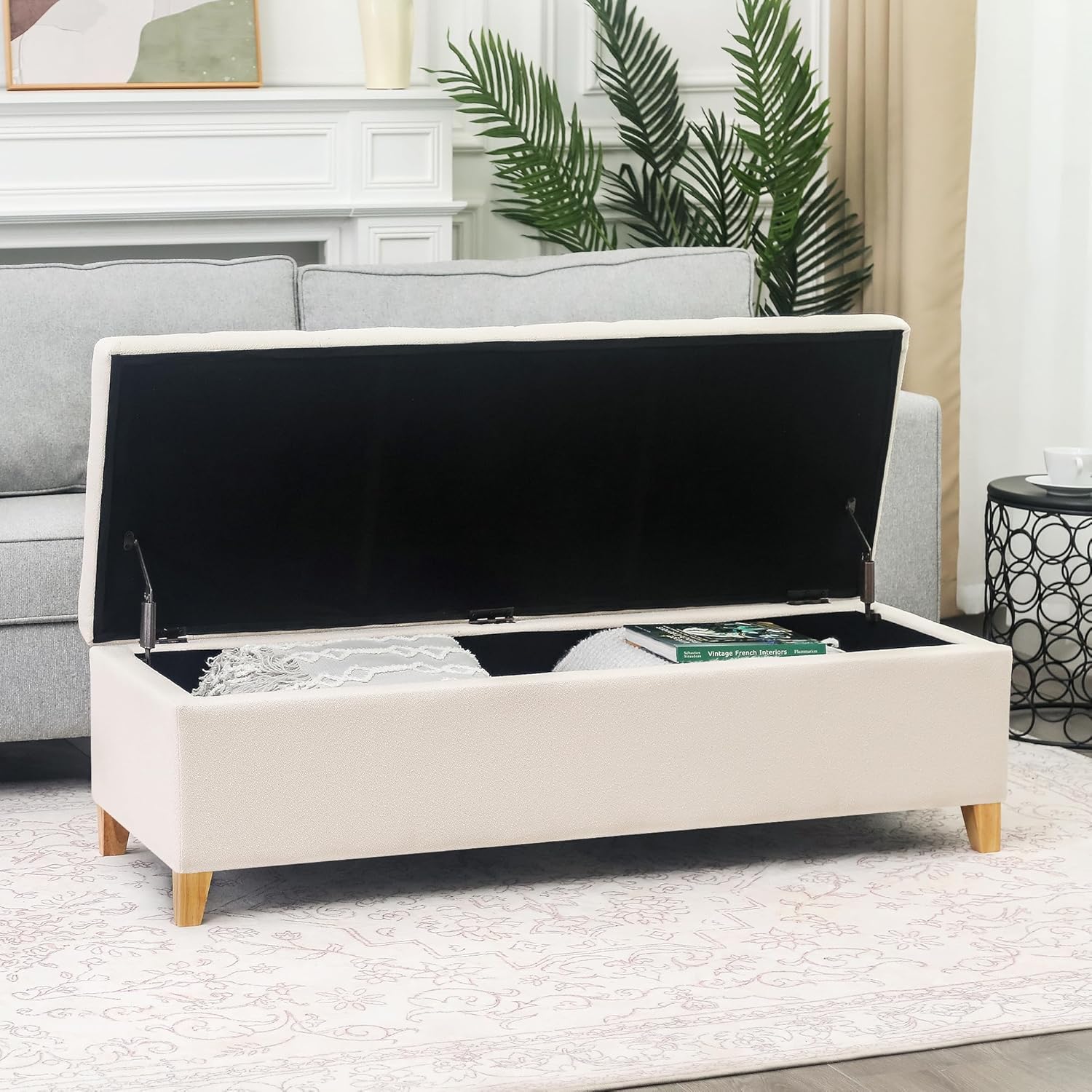 Joveco Storage Ottoman Bench, 51" Rectangle Long Bench, for Bedroom, End Foot of Bed, Living Room, Entryway, Beige