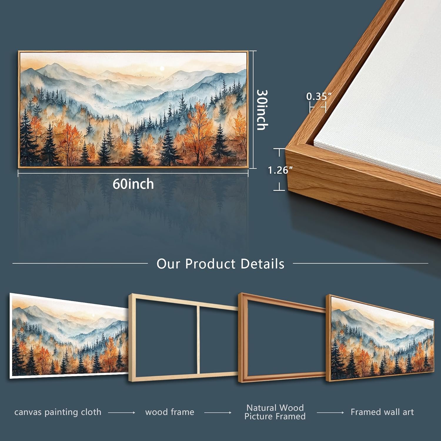 KELIYUAN Large Canvas Wall Decor For Living Room Wood Framed Wall Art For Bedroom Office Farmhouse Murals Abstract Mountain Forest ainting Wall Pictures Restaurant Modern Room Home Decor 30"X60"