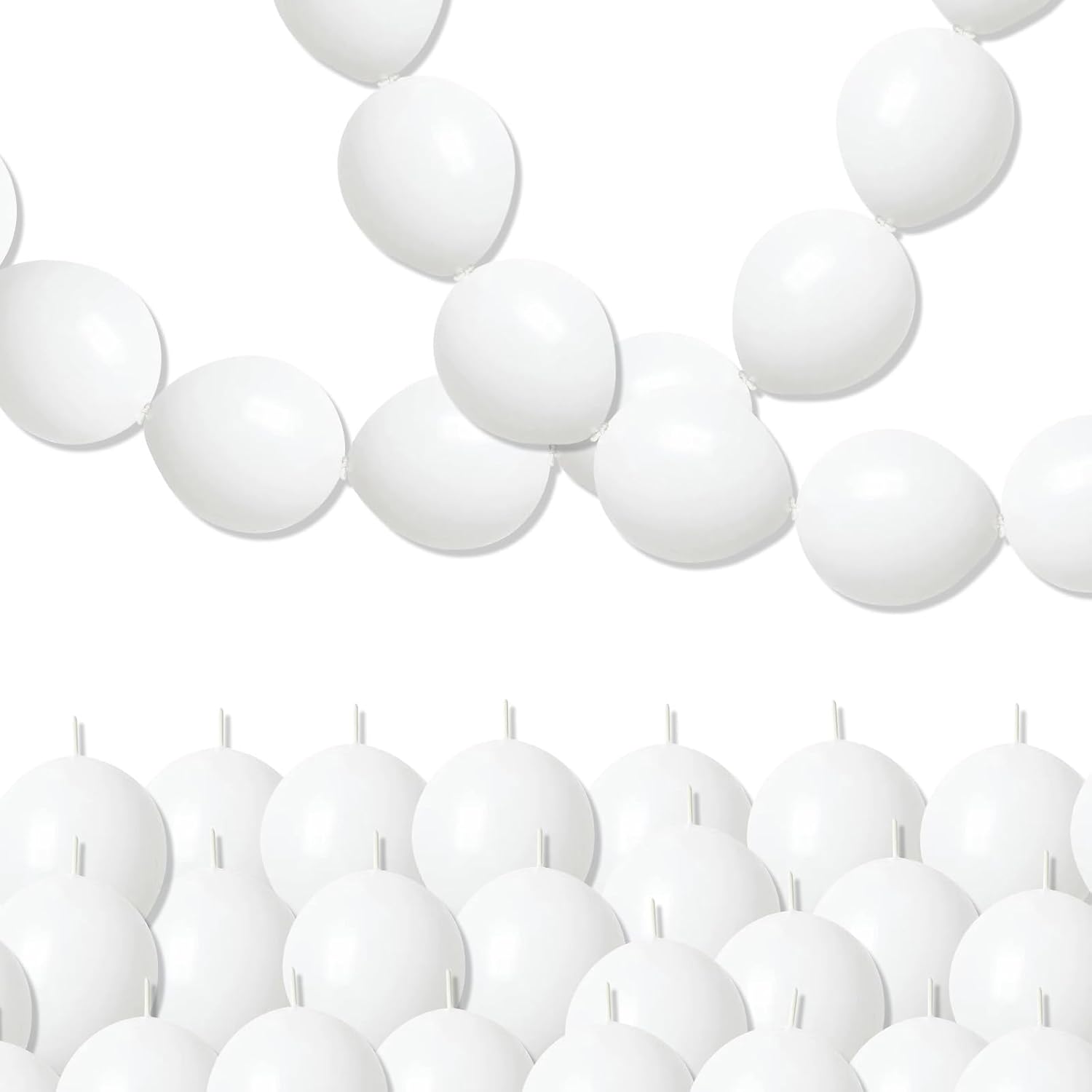 - 💫Balloon Chain Garland - You will receive 100 pcs of 10 inch white link balloons. Our quick link balloons have a unique tail design that allows balloons link to be easily. More convenient and easier to assemble than regular balloons.