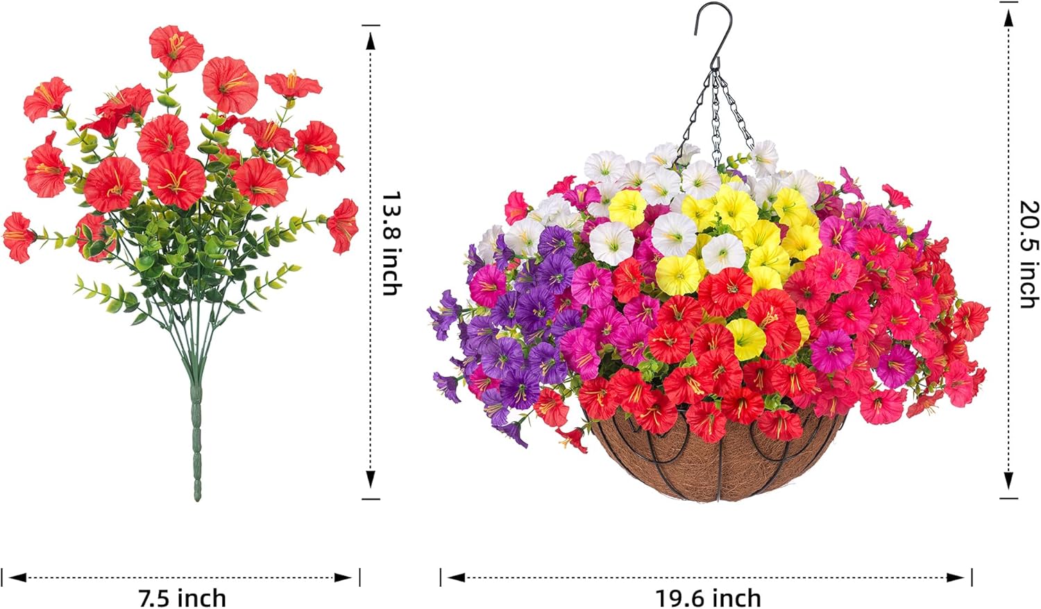 - 🟢 Artificial Hanging Morning Glory Flowers Basket: Package include 12 bundles Realistic silk morning glory match with green eucalyptus leaves, 1 Hanging Basket with chain, 1 foam, 1 green hat. Enjoy vibrant blooms year-round, regardless of the season or weather conditions.