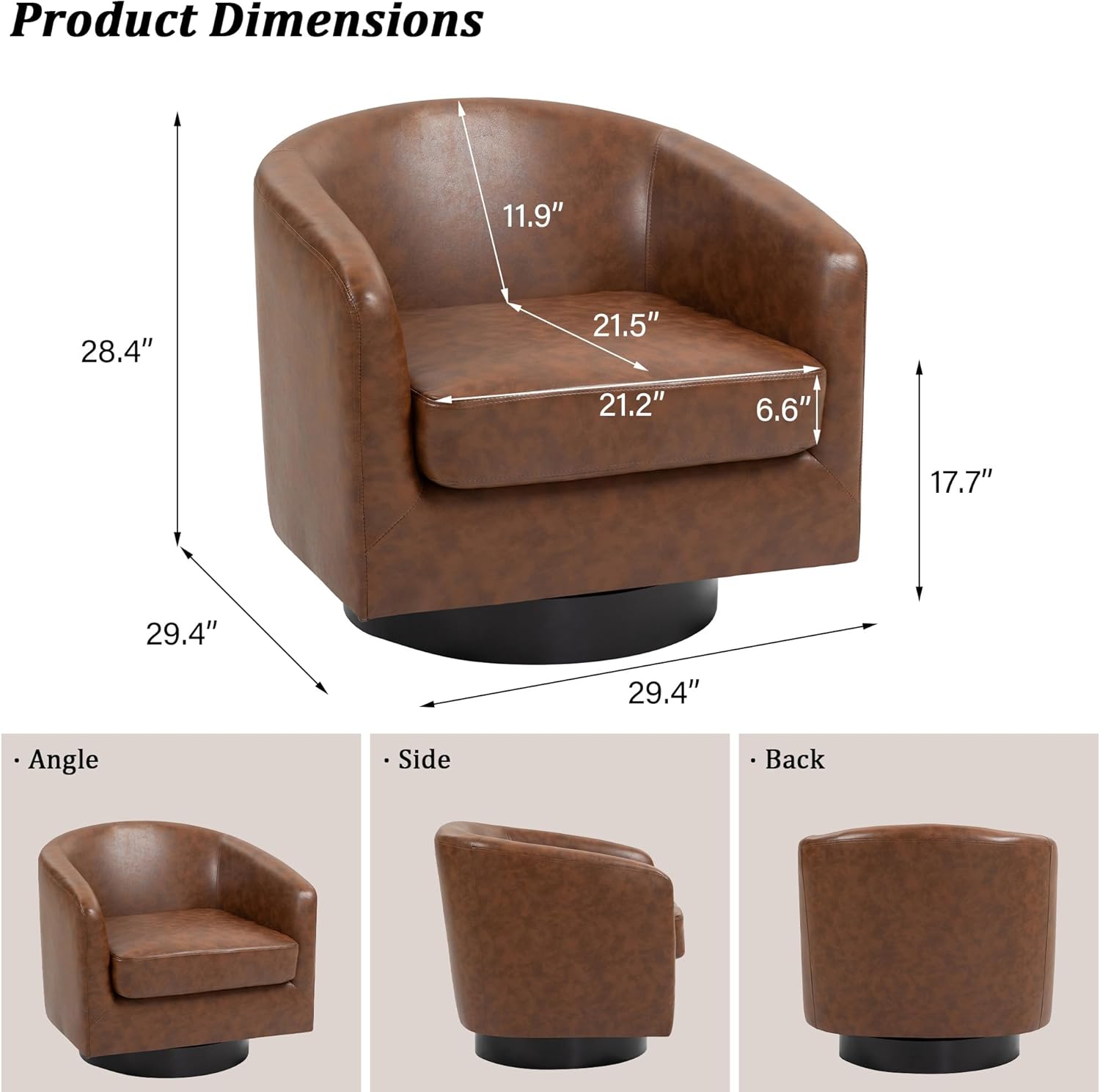 - 360 Degree Swivel Barrel Chair: This 360 degree round swivel chair designed for your leisure comfort. Heavy solid turntable, making it more stable and not wobbly