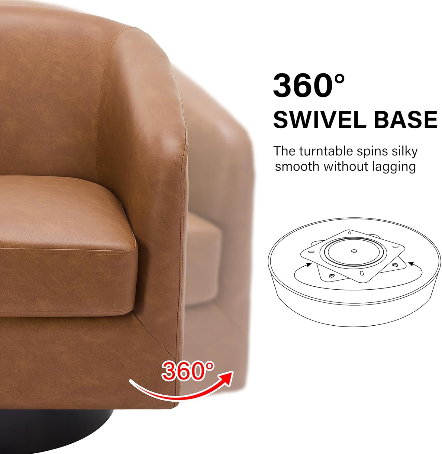 - 360 Degree Swivel Barrel Chair: This 360 degree round swivel chair designed for your leisure comfort. Heavy solid turntable, making it more stable and not wobbly