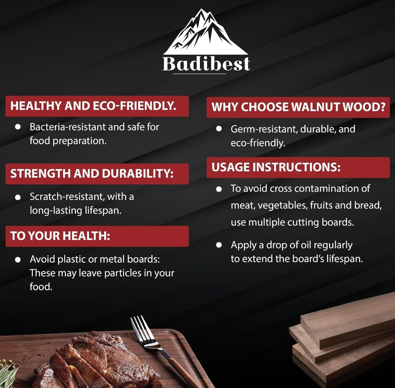 - 【𝐅𝐨𝐨𝐝-𝐒𝐚𝐟𝐞 & 𝐄𝐜𝐨-𝐅𝐫𝐢𝐞𝐧𝐝𝐥𝐲 – 𝐍𝐚𝐭𝐮𝐫𝐚𝐥𝐥𝐲 𝐍𝐨𝐧 𝐓𝐨𝐱𝐢𝐜】: Finished with 100% food-grade mineral oil and free from harmful chemicals, our cutting boards non toxic are safe for all food types. Sustainably sourced walnut and eco-conscious craftsmanship make our wood cutting boards for kitchen a smart, healthy choice for any kitchen.